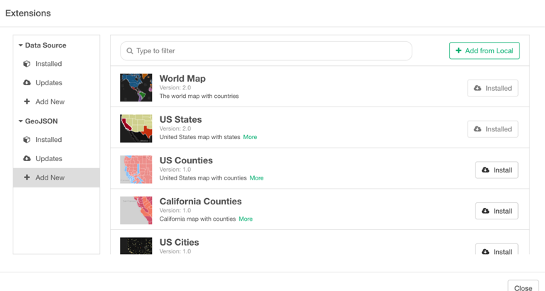 Extend Exploratory with your favorite R packages or your own R functions for your data analysis, your GeoJSON for spatial data visualization, your color palettes for data visualization, and your own data sources. Oh, have we mentioned you can interact with data in a command line mode as well?