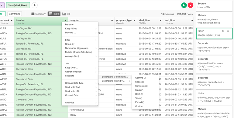 80% of the time spent on data wrangling for most of the data science projects. Exploratory provides a full featured environment to make you comfortable working with any data challenges.