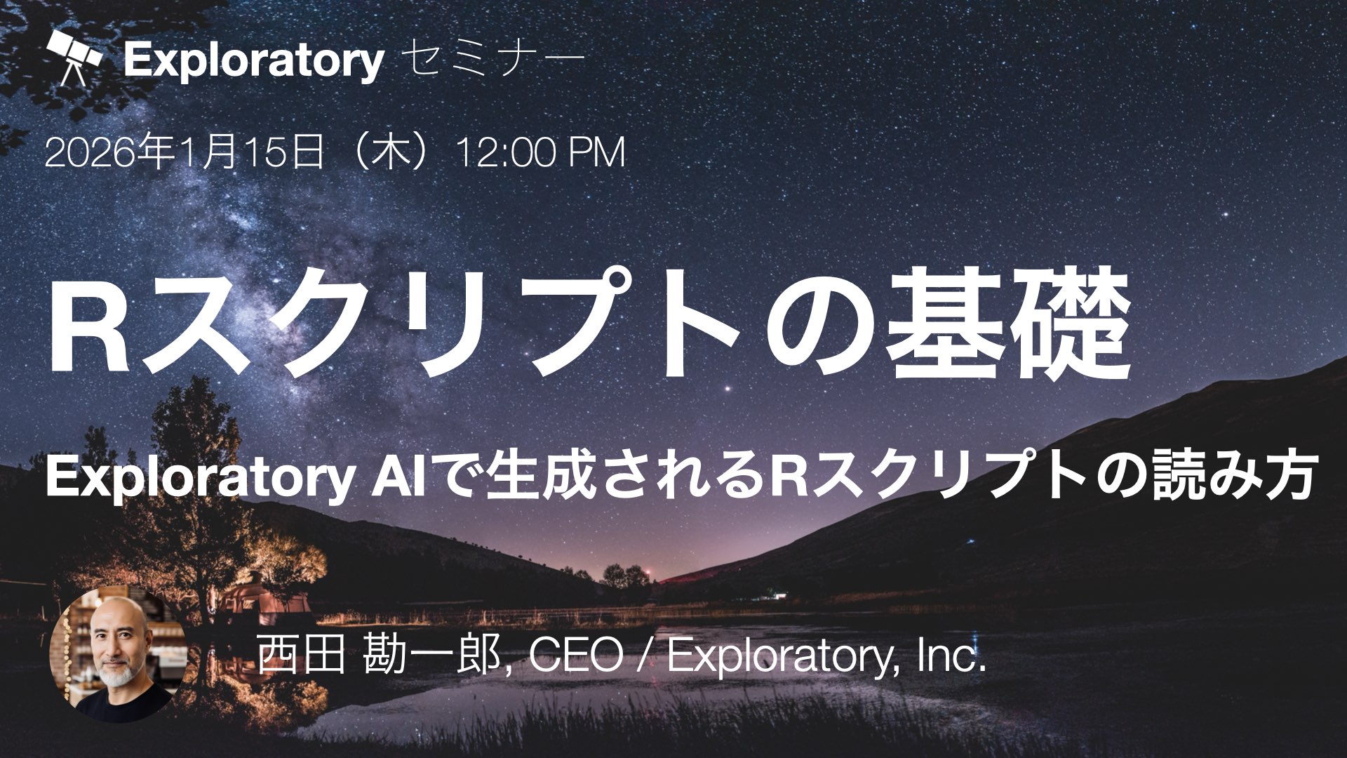 本セミナーでは、Rをまったく知らない方を対象に、「AIが生成するRスクリプトを理解するために最低限知っておくべきポイント」に絞って解説します。