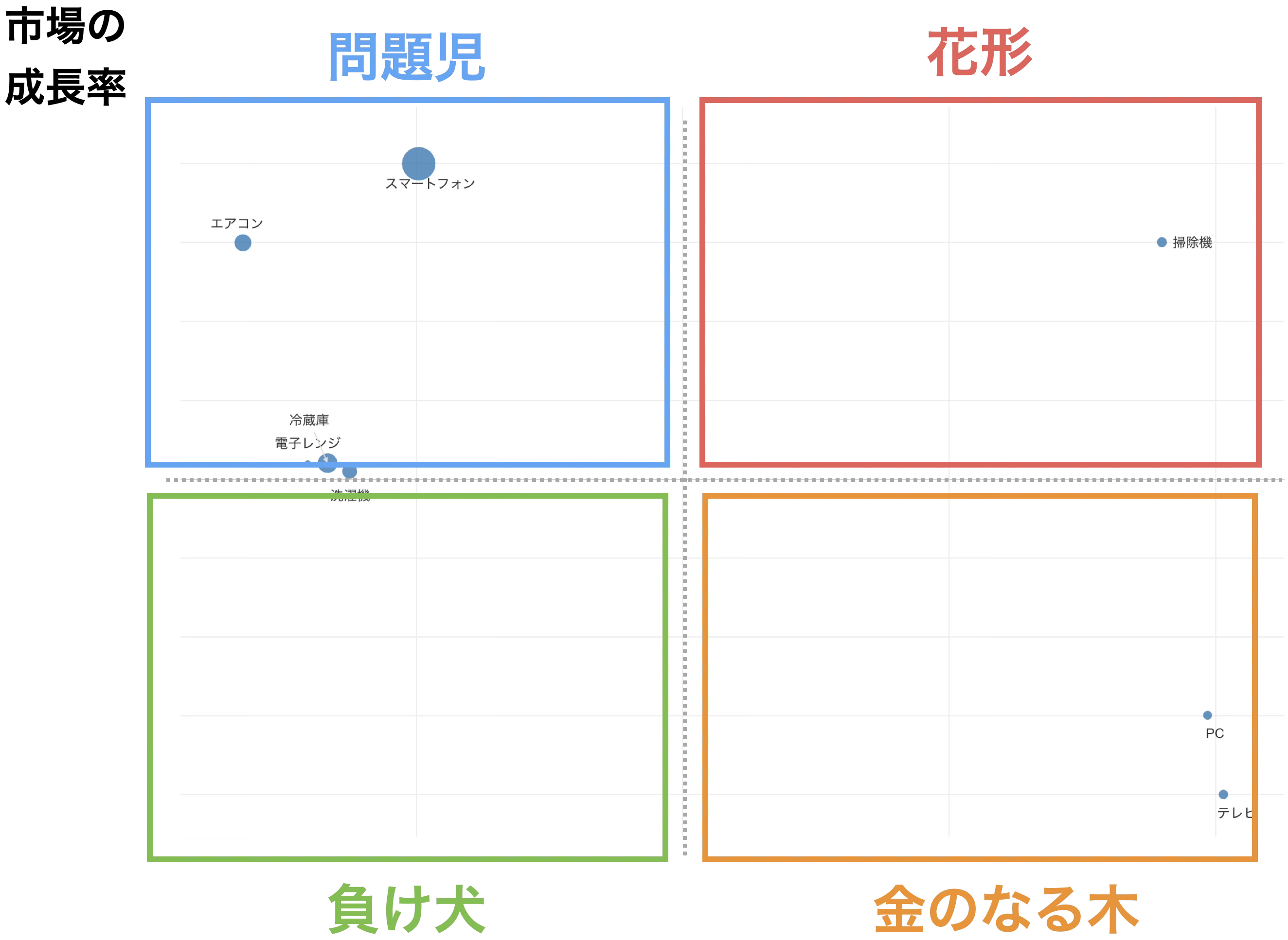 この結果から、各製品カテゴリーがどの象限に位置するかを確認できます。