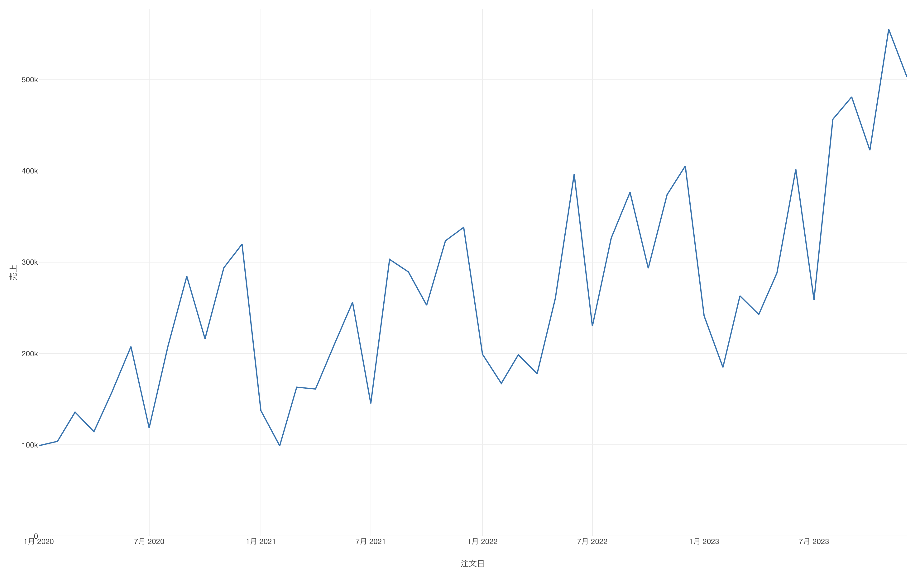 以下は月ごとに売上の合計値を可視化したラインチャートです。