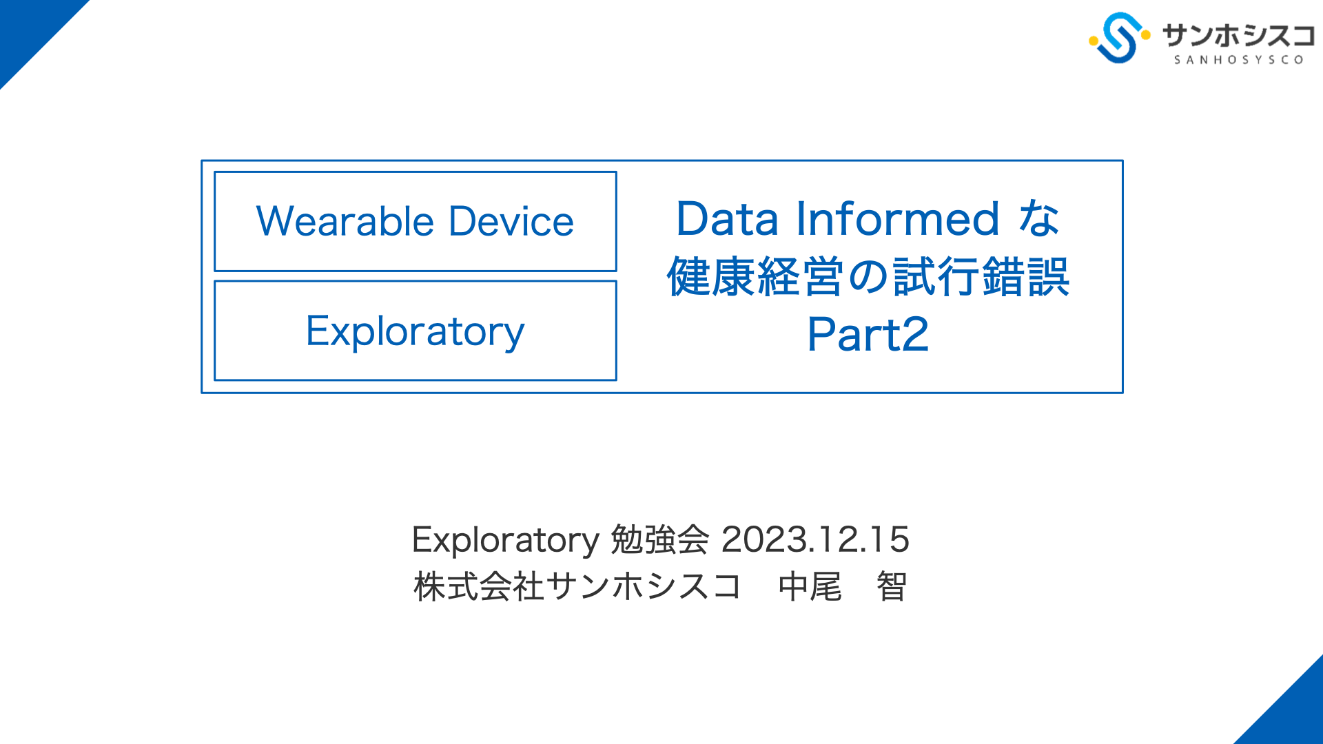 今回のご登壇では、Exploratoryのダッシュボードを使って少ない工数で集団の行動変容を促進したお話と、行動変容の結果が、実際に健康状態の改善に役立っったのかどうかを、線形回帰モデルを使って解析する事例を紹介いただきました。