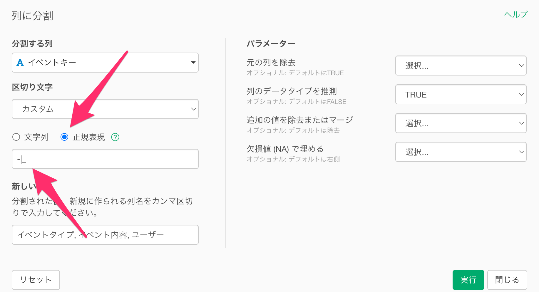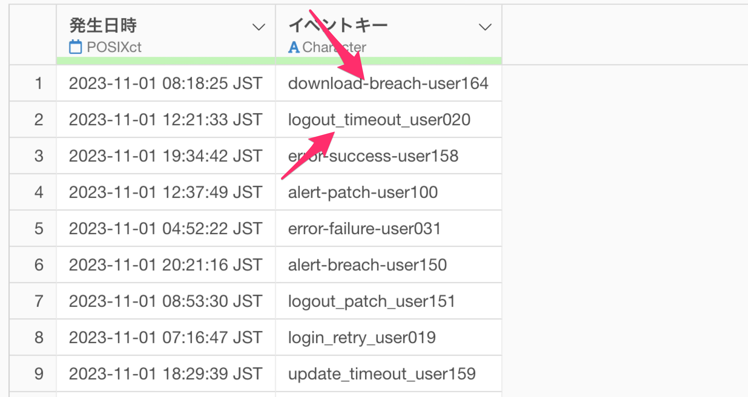 データの中に複数の区切り文字が混在している場合、単一の区切り文字では適切に列を分割することができません。例えば、イベントの種類によって区切り文字がハイフン(-)だったりアンダースコア(_)だったりする場合、単純な列分割では欠損値が発生してしまいます。
