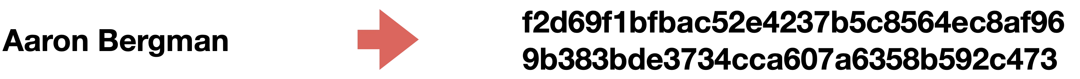 ハッシュ化・匿名化のメリットは、Aaron Bergmanは常に同じ文字列に変換されるという点です。誰なのかは認識できないけれども、同じ値があった時には同じ匿名化された結果が返ってくるため、文字列自体に意味はないものの、一意なデータとして扱いたい時に非常に便利です。