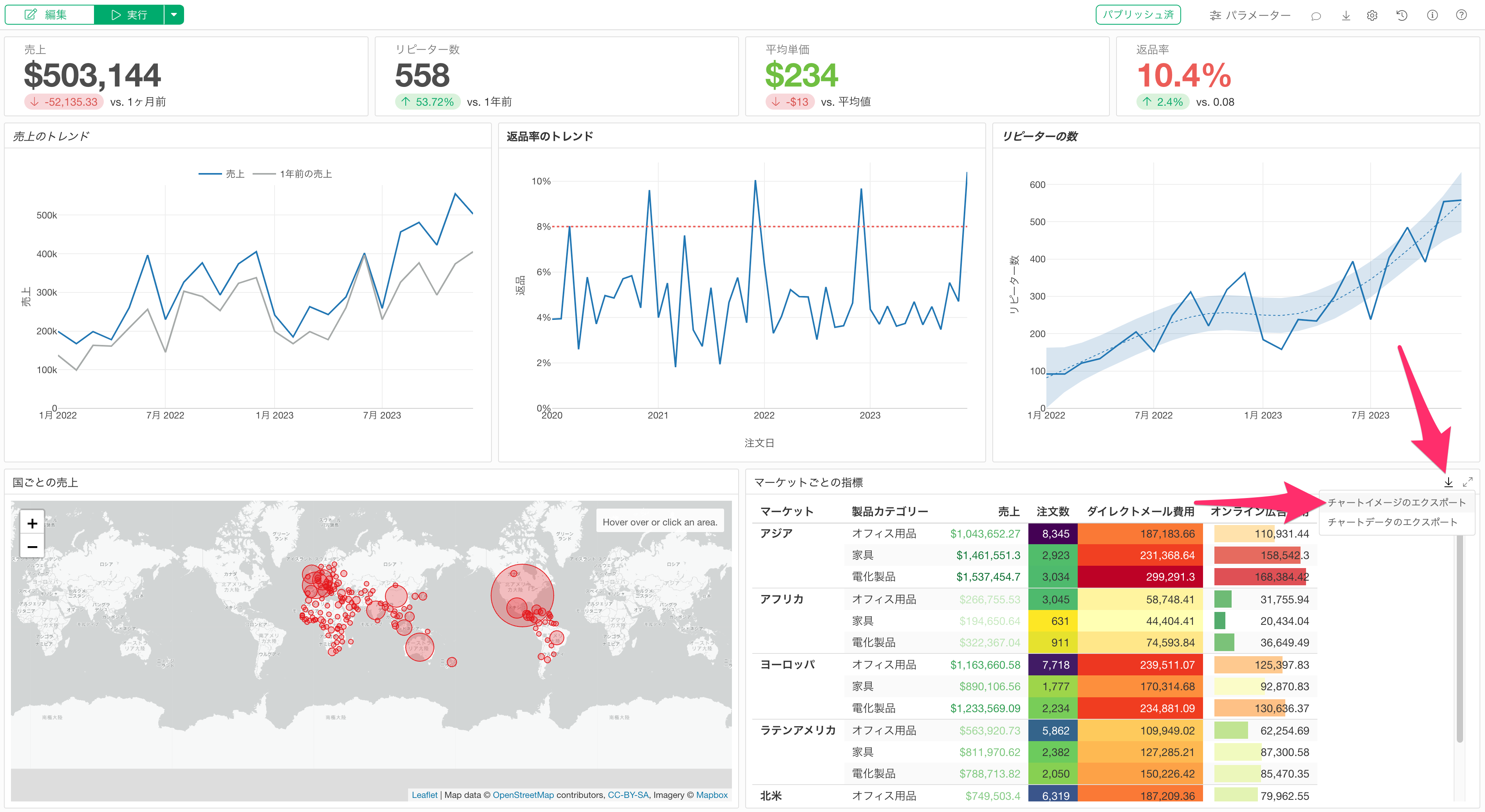 ダッシュボード内のテーブルチャートも同様に画像としてエクスポートできます。