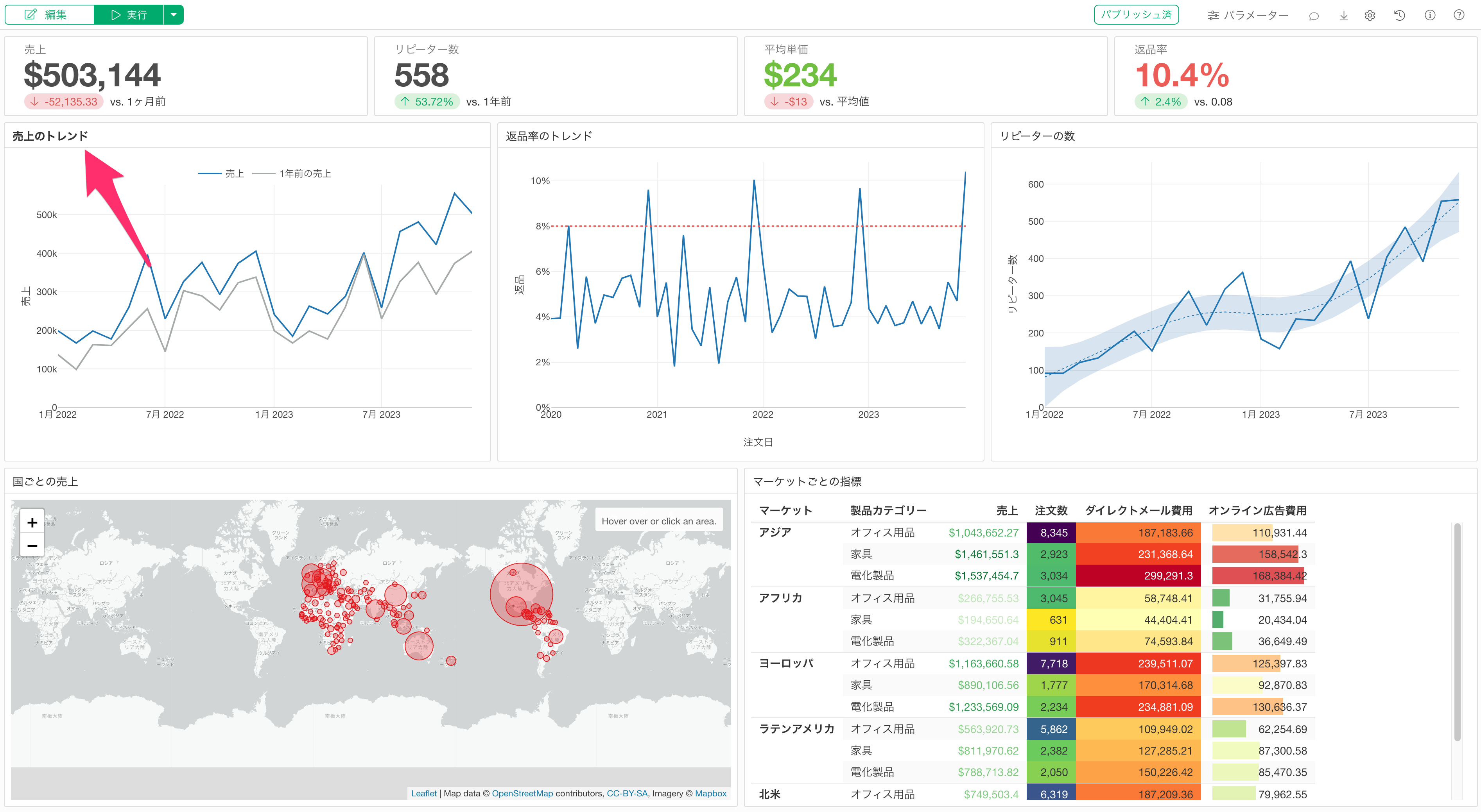 このようにで各チャートのタイトルに異なるスタイルを適用し、ダッシュボードの見栄えをカスタマイズすることができました。この機能を活用することで、重要な指標を強調したり、視覚的な階層構造を作ったりすることが可能になります。