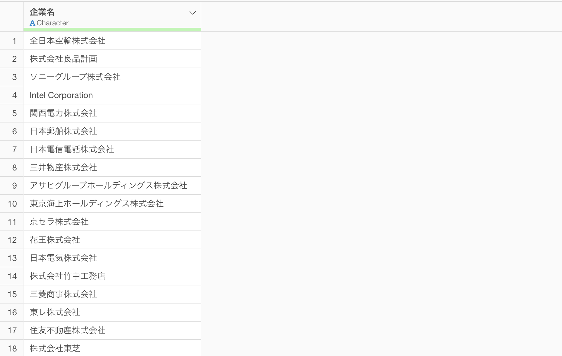 企業名に基づいて「産業名」列がデータフレームに追加されます。一部の企業では、複数の産業にまたがる場合があり、その際にはカンマ区切りで複数の産業名が返されることがあります。
