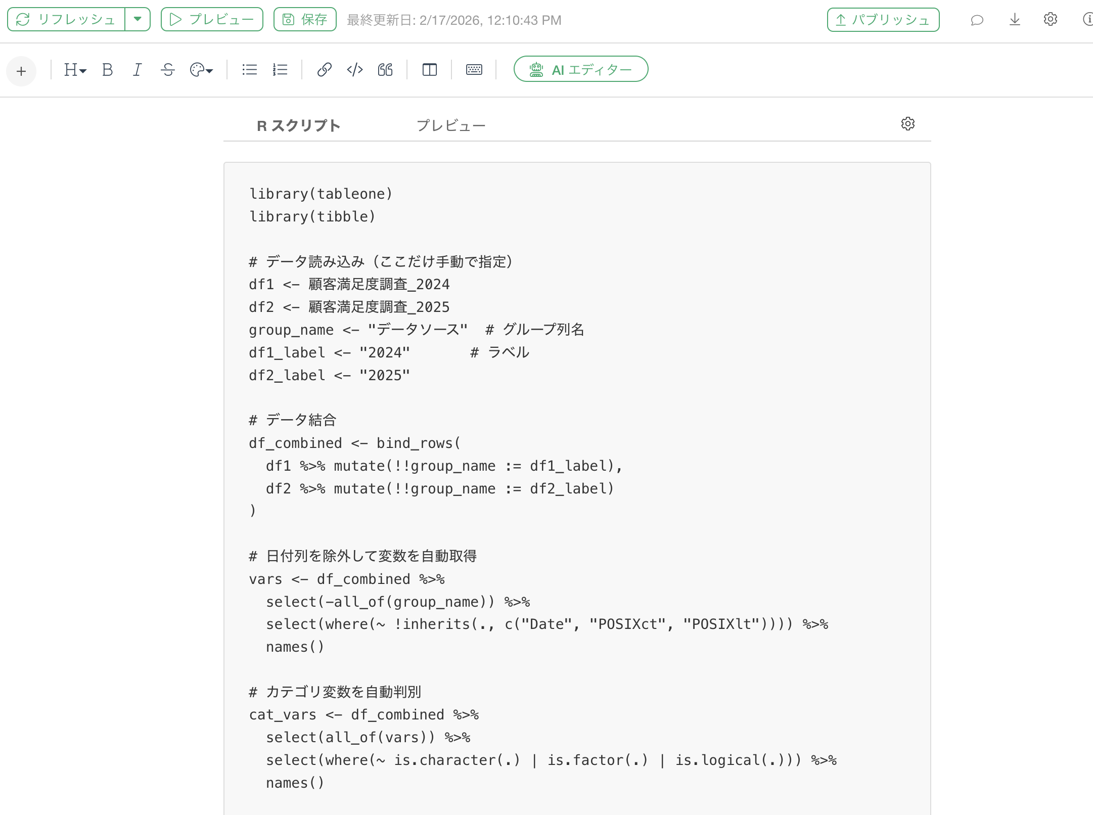 今回は、Exploratoryのノート機能とRスクリプトを組み合わせ、データ構造の比較や、全列を対象とした統計的な有意差の確認を一括で行う手順について紹介します。