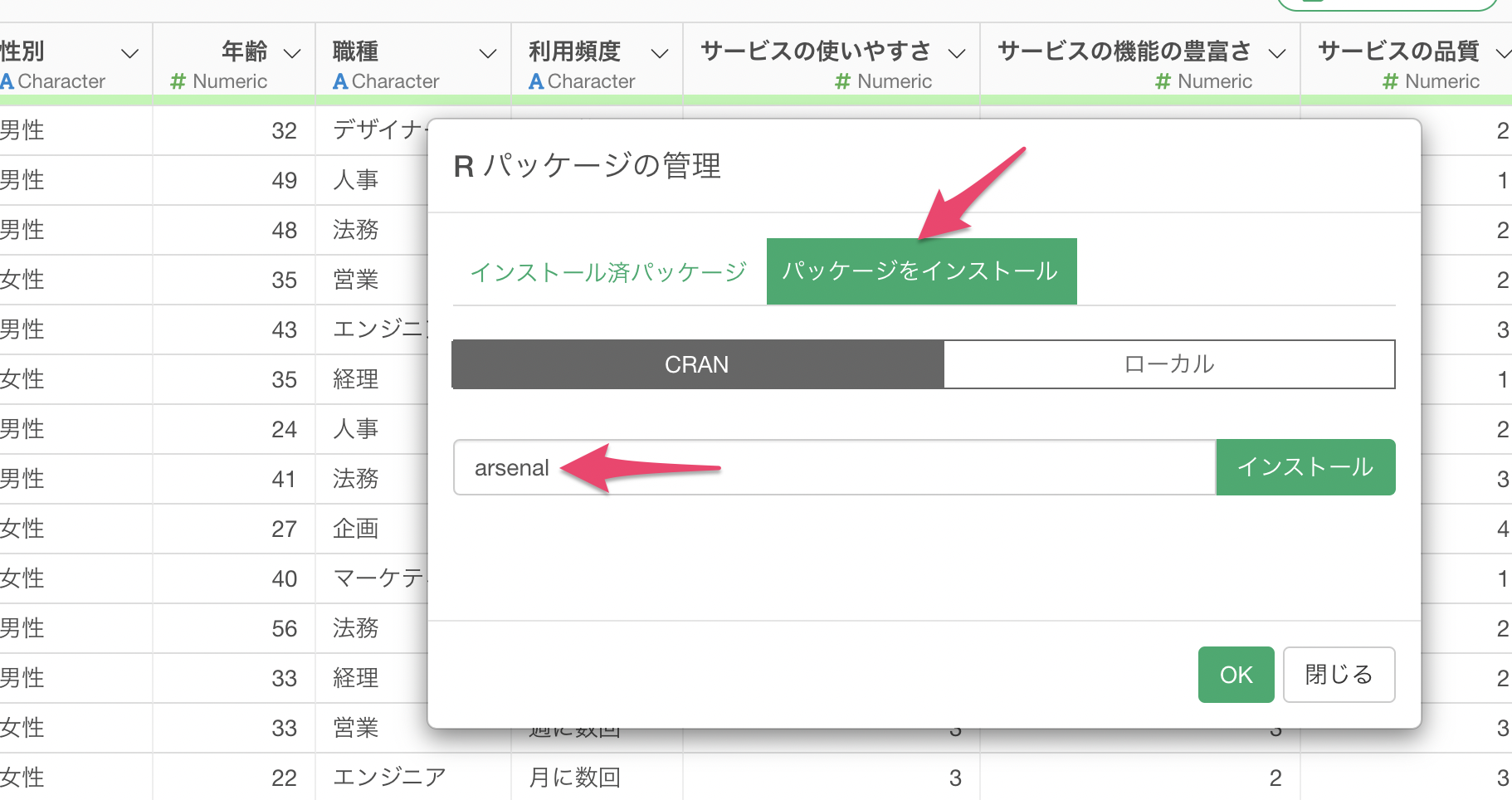 具体的な操作として、まずプロジェクトメニューの「Rパッケージの管理」を選択します。