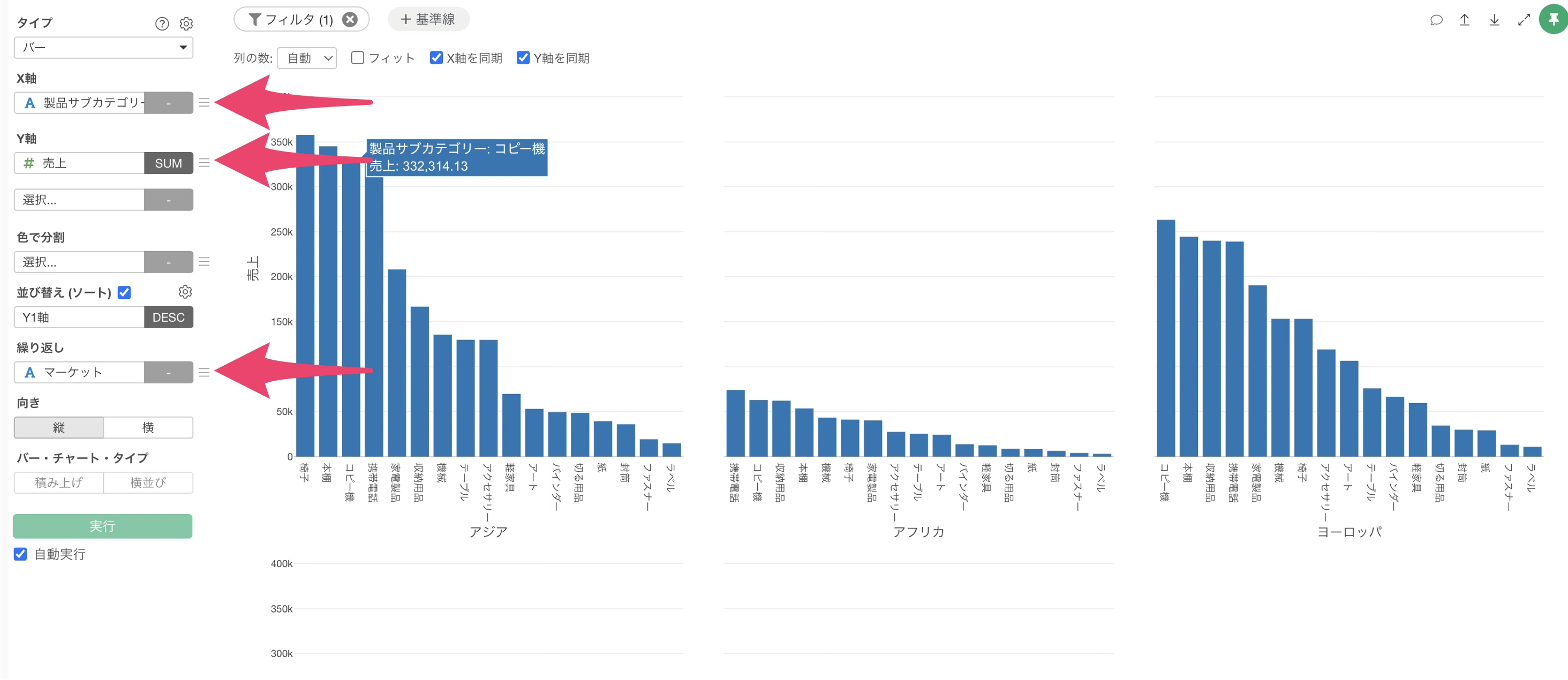 Exploratoryのバージョン14から、X軸、Y軸、繰り返しなどのチャートの設定ダイアログをドラッグ&ドロップで自由に移動できるようになりました。