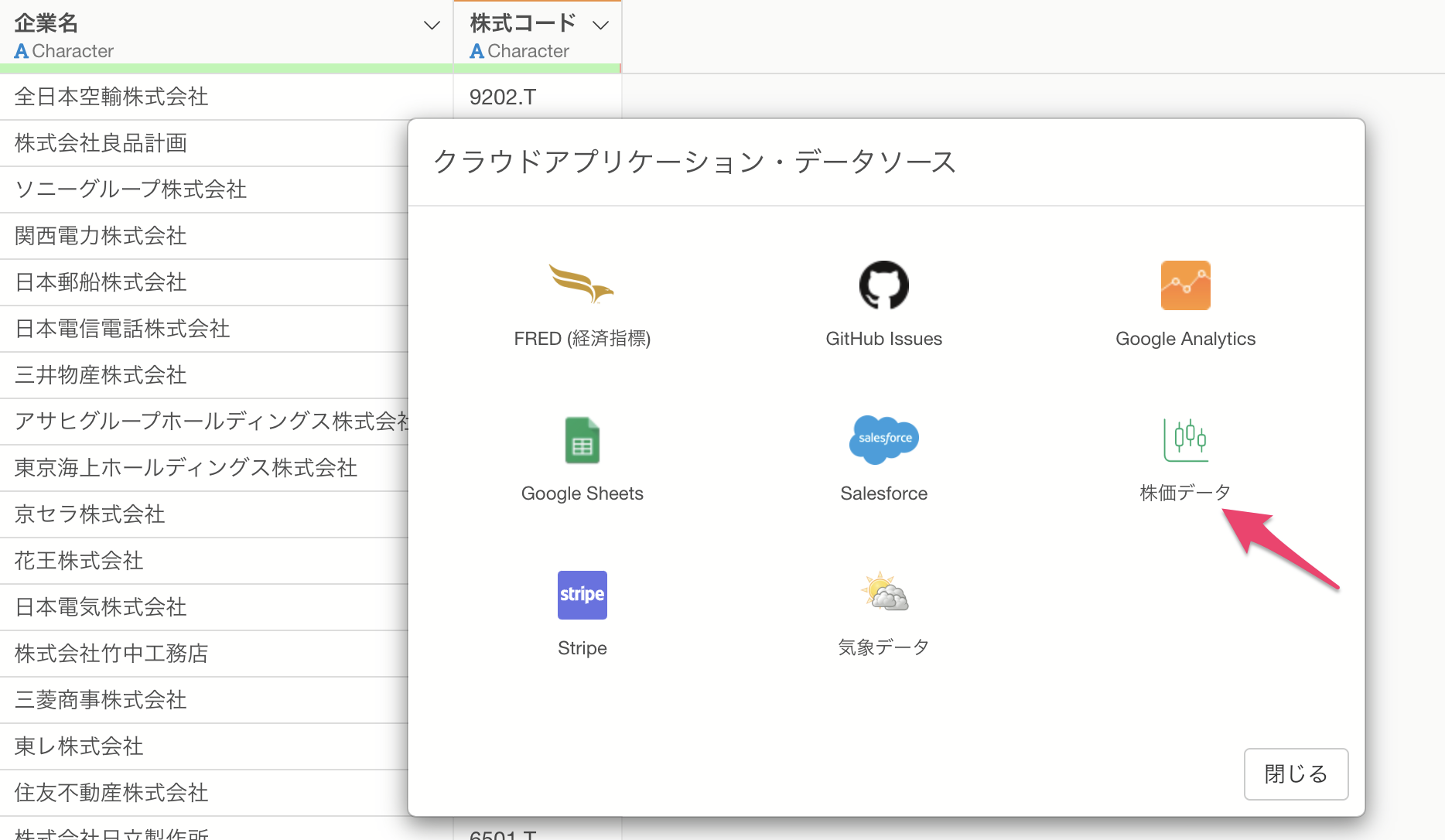 次に「株価データ」を選びます。