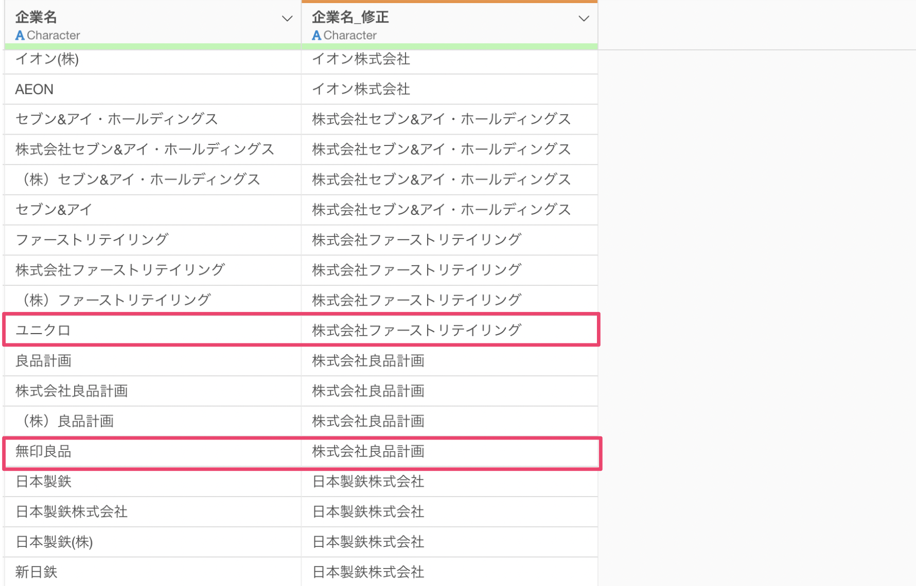 さらには、「ユニクロ」を「株式会社ファーストリテイリング」に、「無印良品」を「株式会社良品計画」にしてくれています。