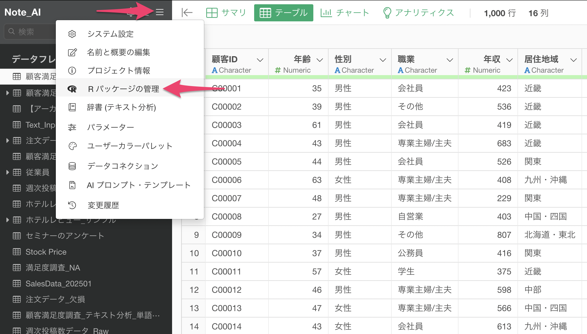 # 例:データフレーム名が「顧客満足度調査」の場合