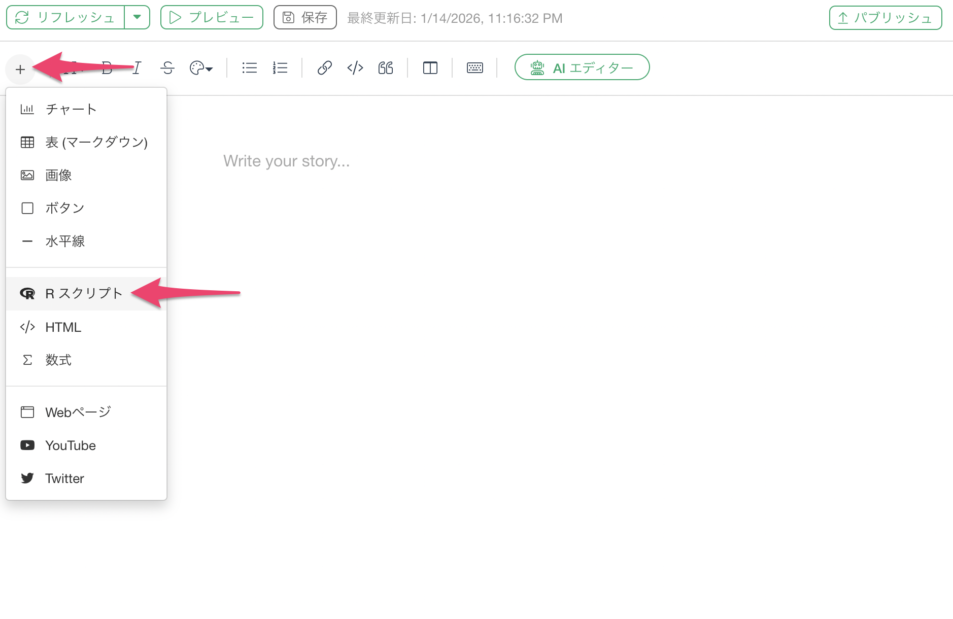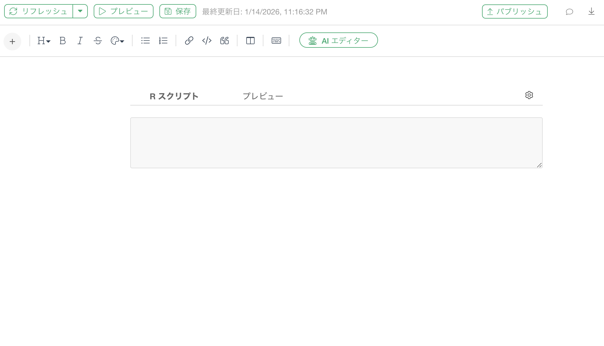 Rスクリプトを記述するためのコードブロックが追加されました。