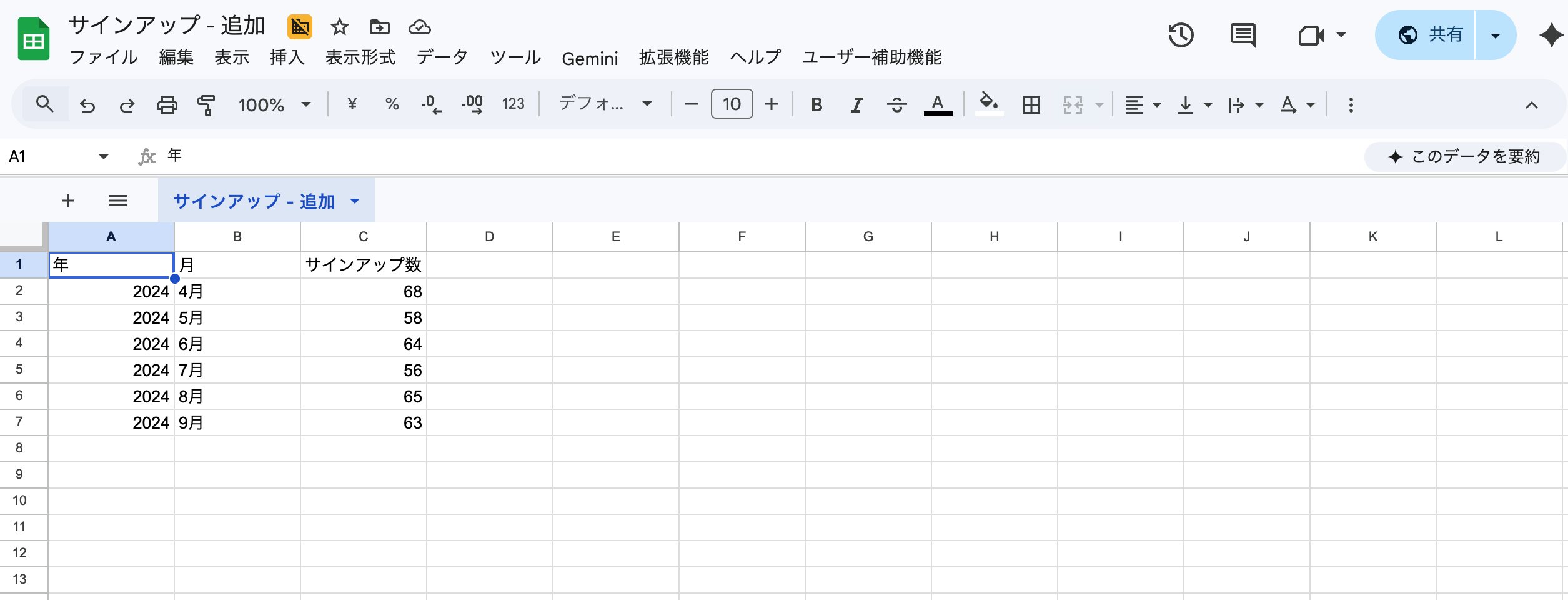 Google スプレッドシートをクリックすると、スプレッドシートが開きます。