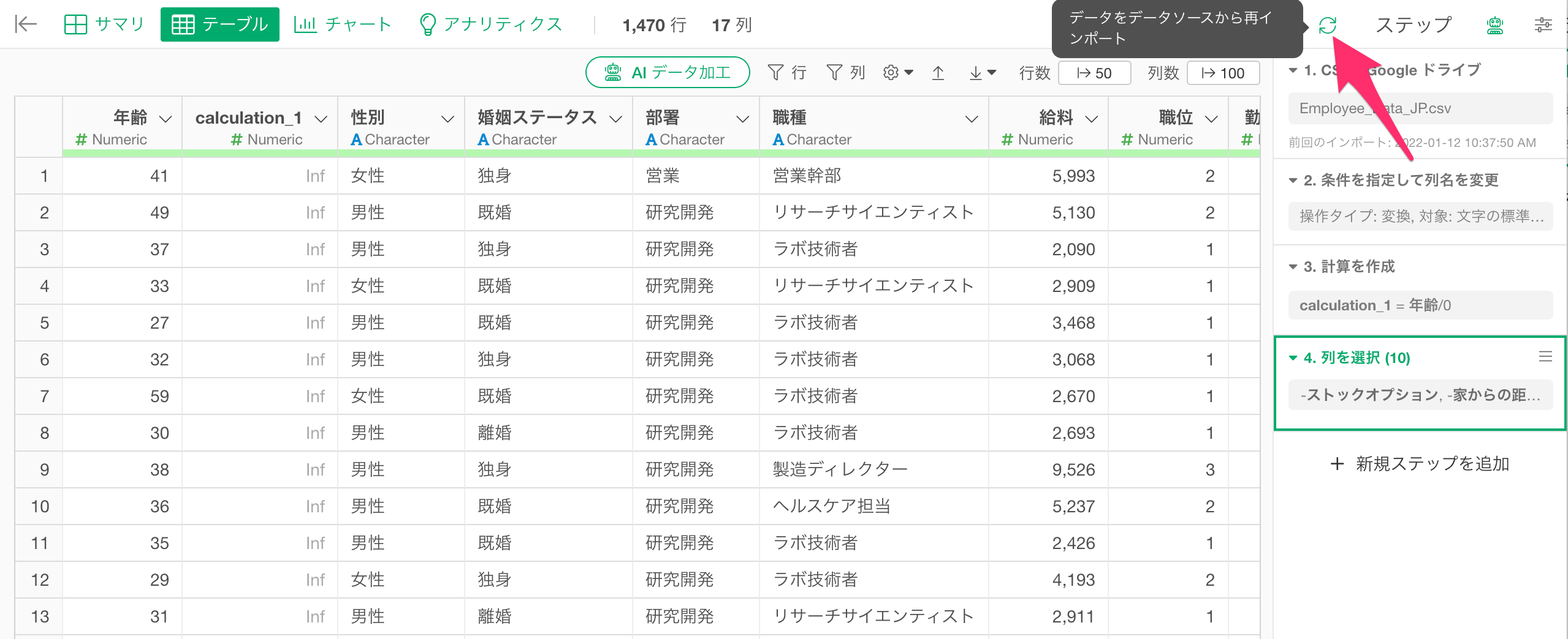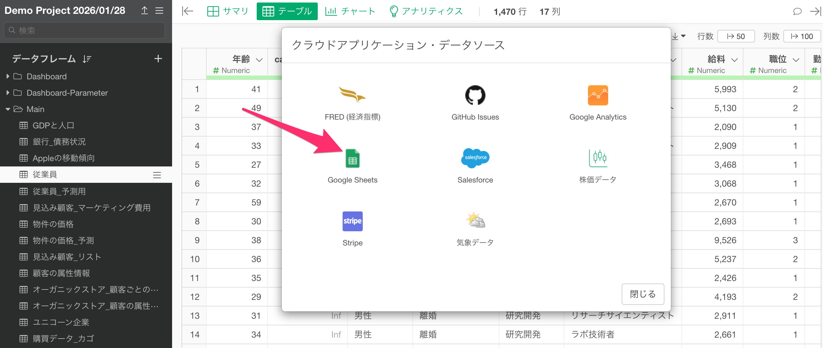 CSVファイルではなく、最初からGoogleスプレッドシートをデータのマスターとして利用する方法です。Exploratoryでは、Google DriveのCSVだけでなく、Googleスプレッドシートのデータも直接インポートできます。