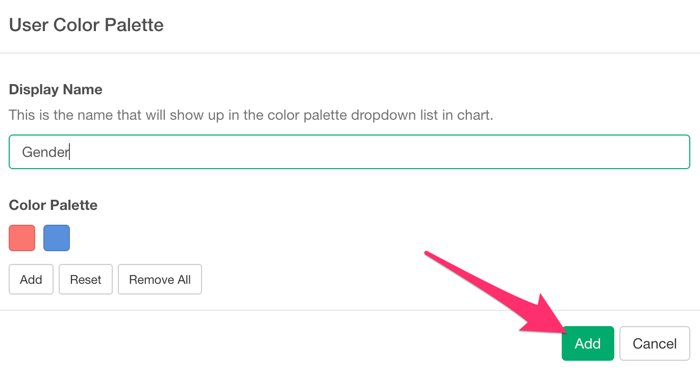 Once you have finished adding the palette and assigning the colors, click the “Add” button.
