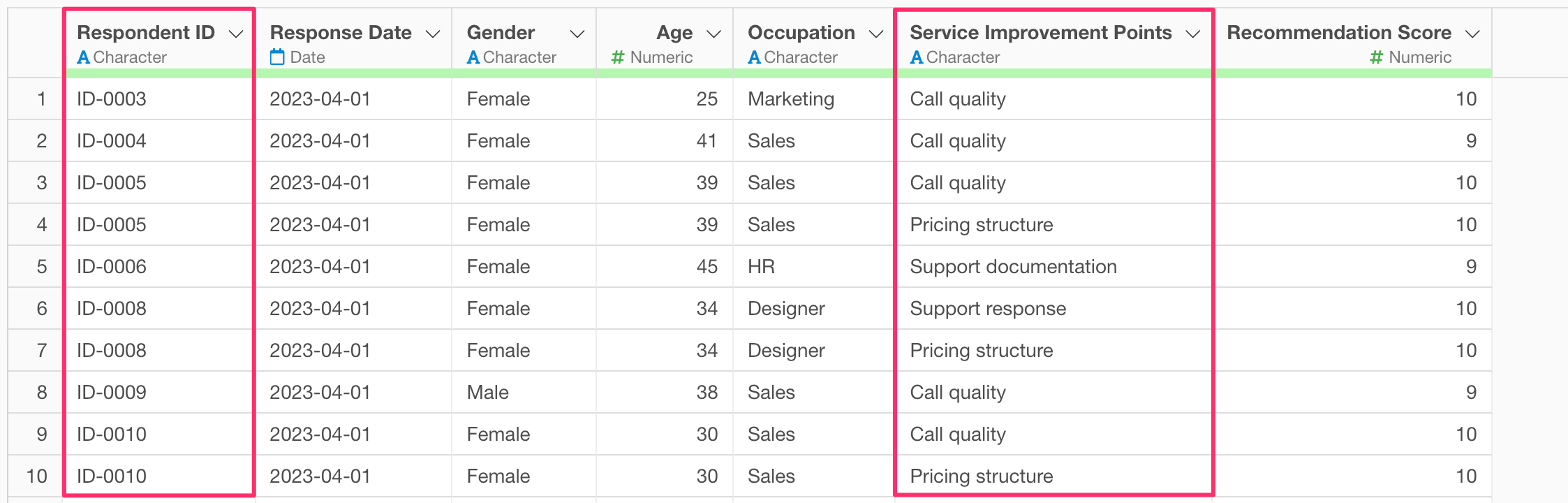 For example, consider survey data where one row represents one respondent.