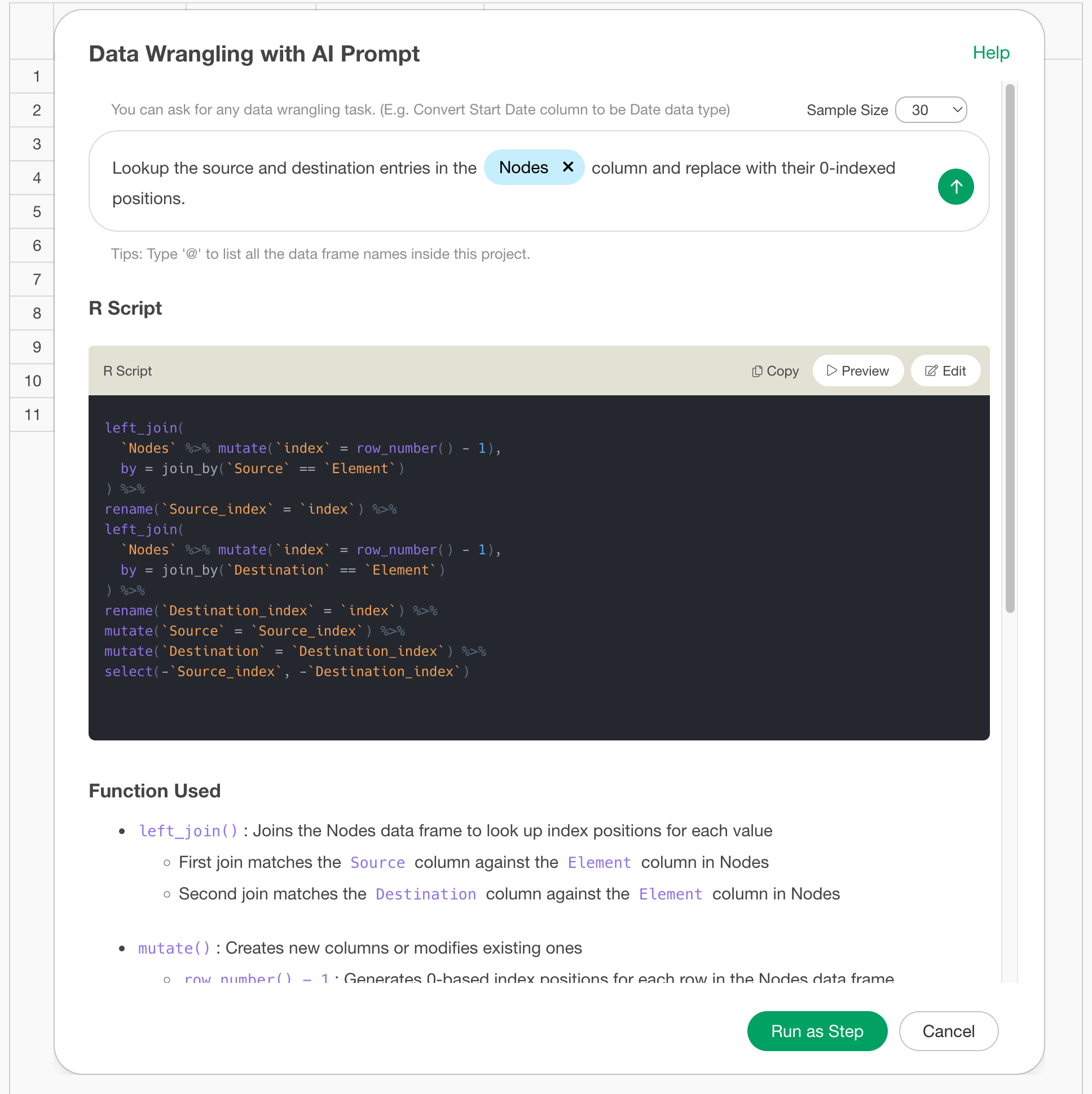 At this point, remember to specify the node data frame according to the AI Prompt data frame notation.