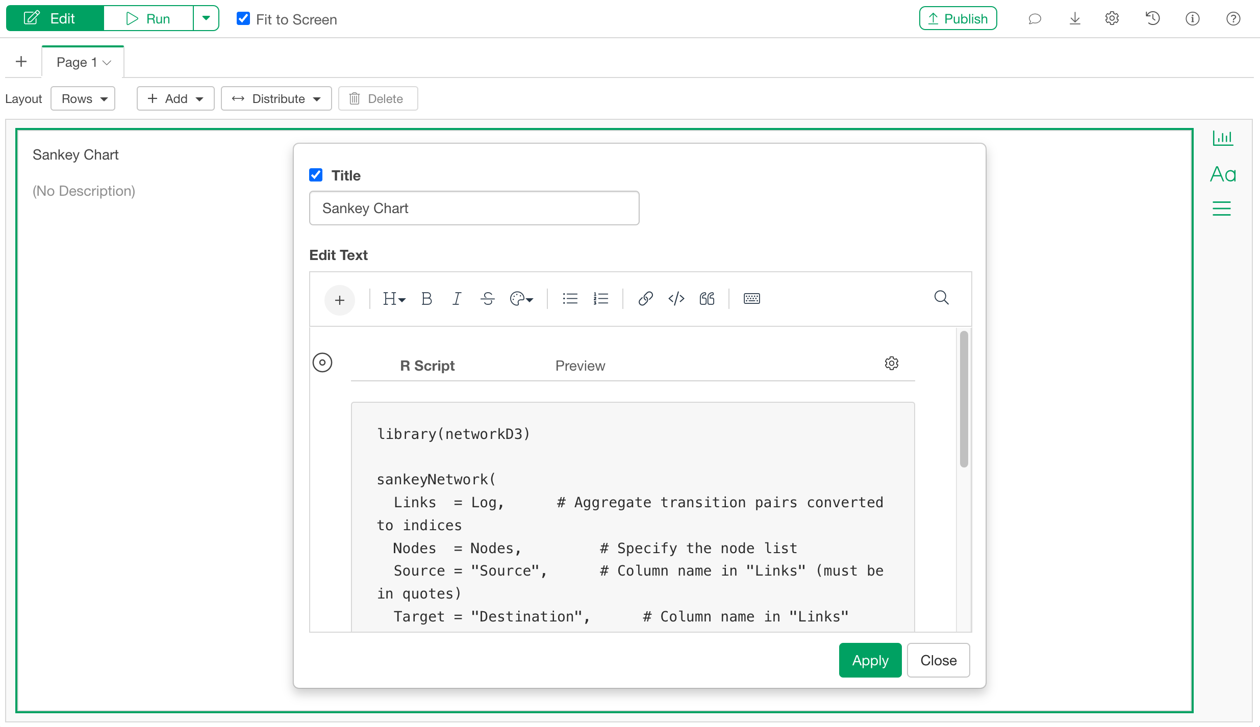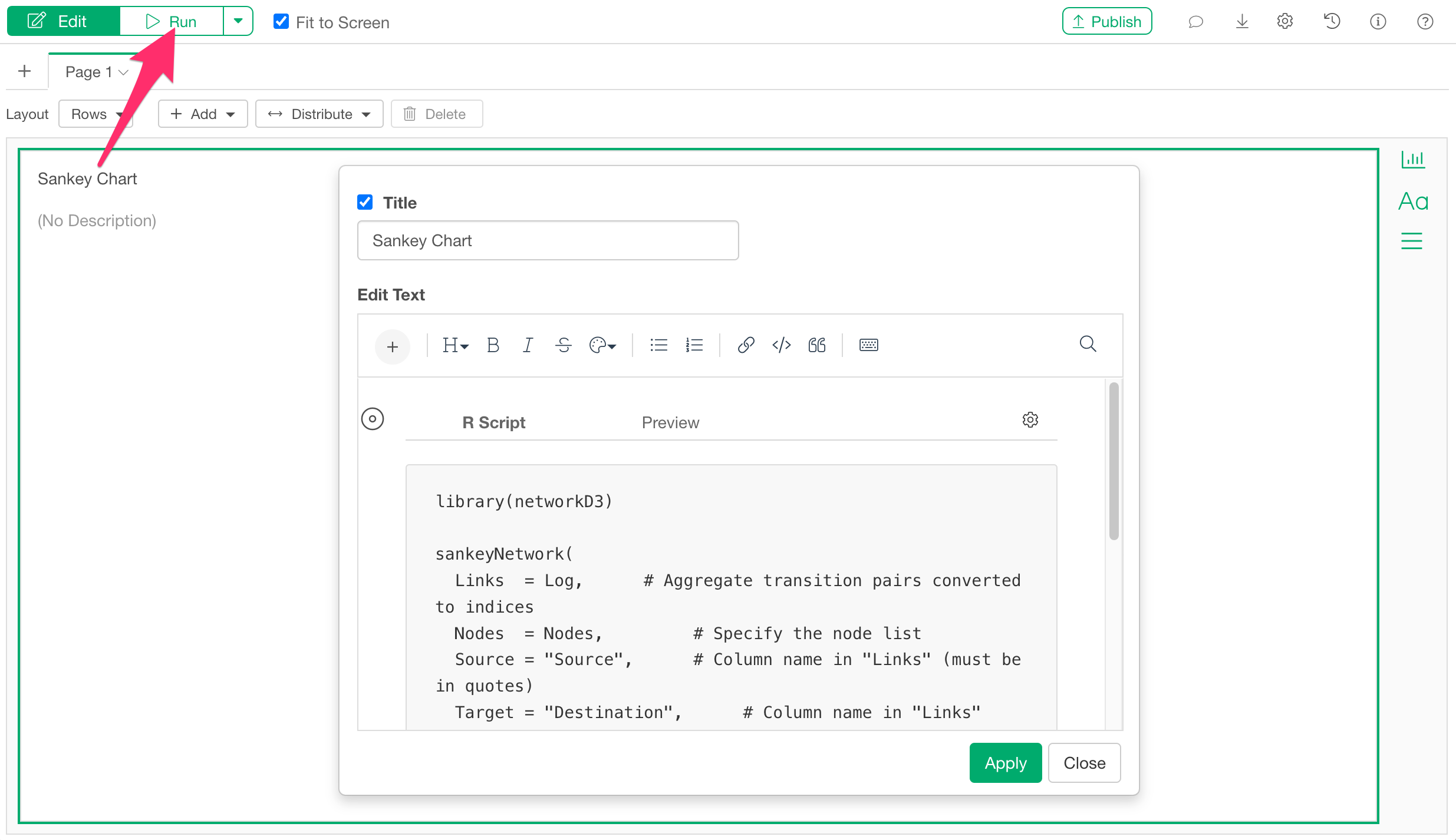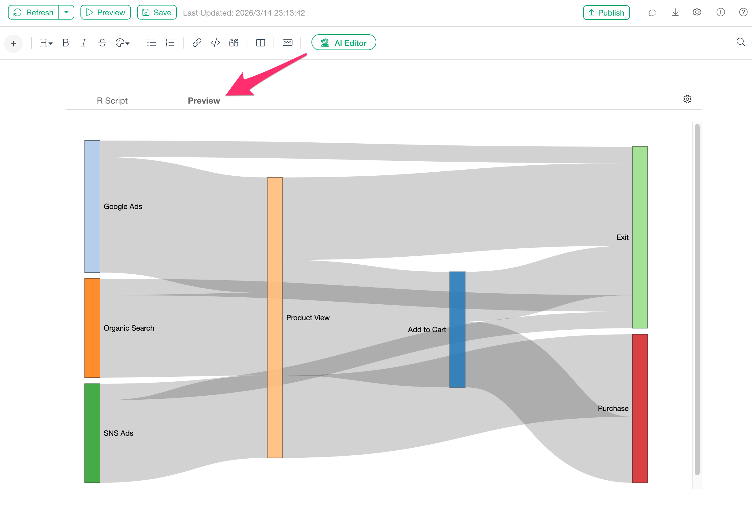 The Sankey chart will be displayed as shown above, and you can adjust the positions of each node by dragging them.