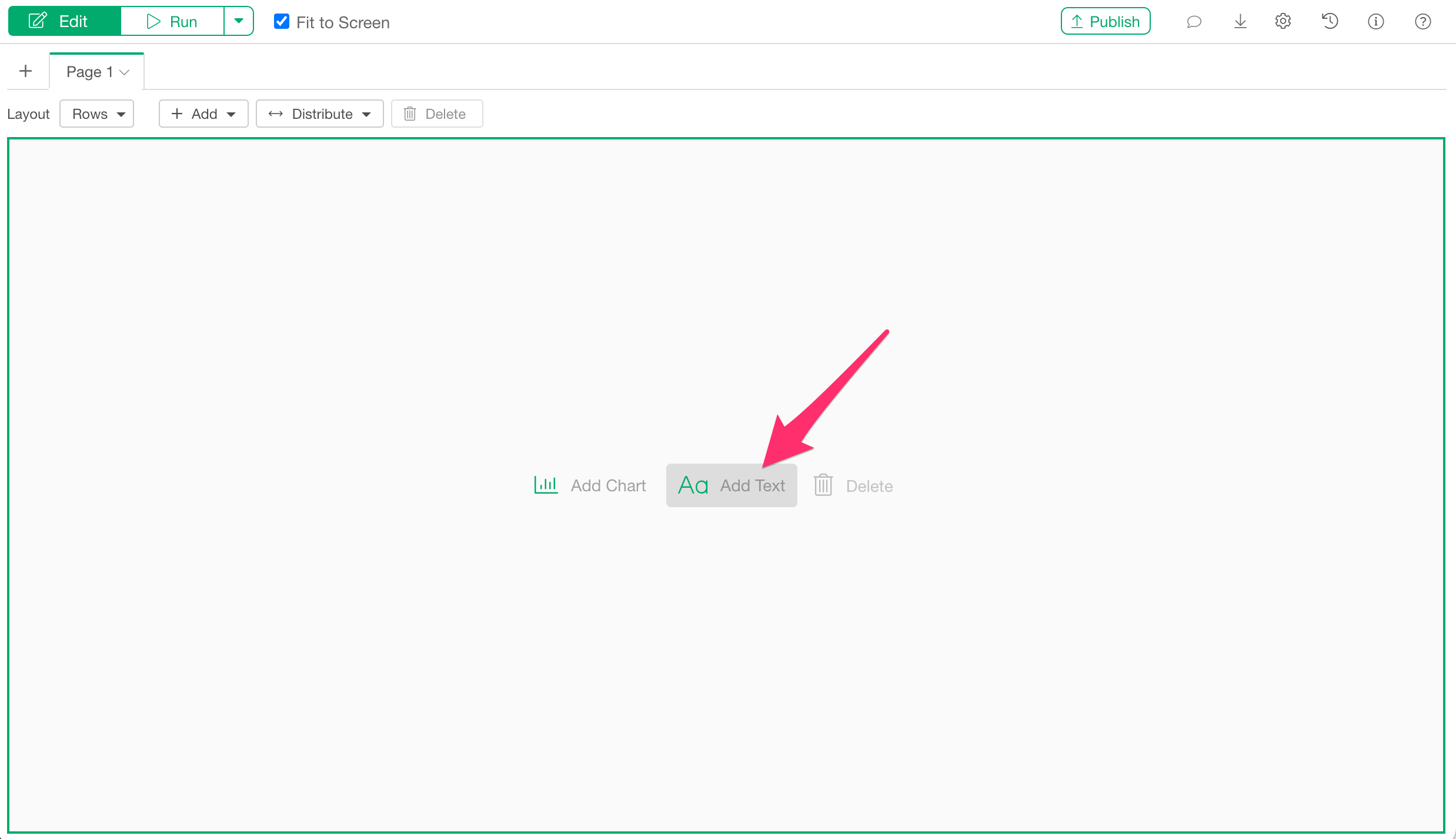 Once you open the dashboard, click the “Add Text” button from the edit screen.