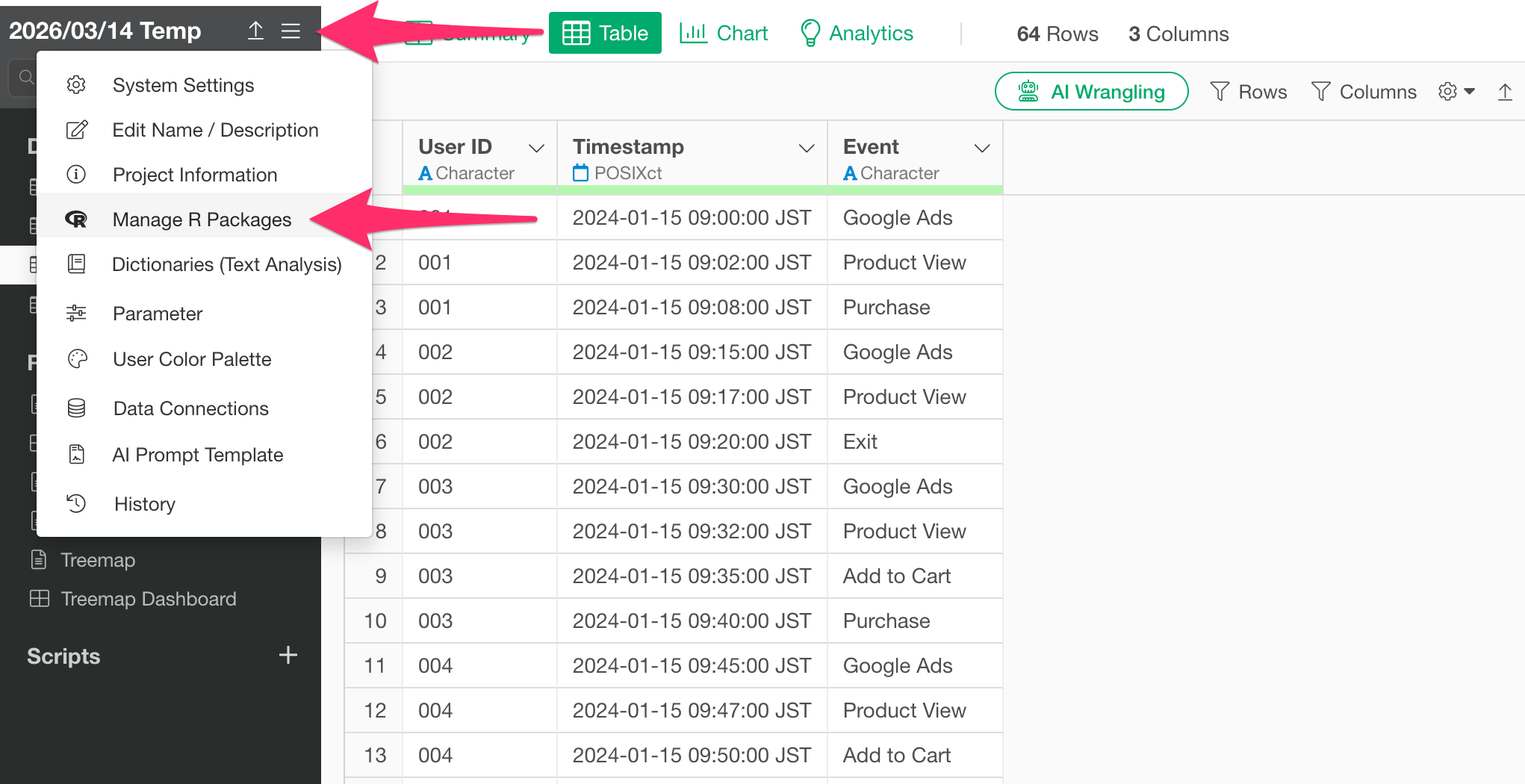 When the R script input dialog appears, paste the following code. (Please change the parts marked with # to match your own data.)