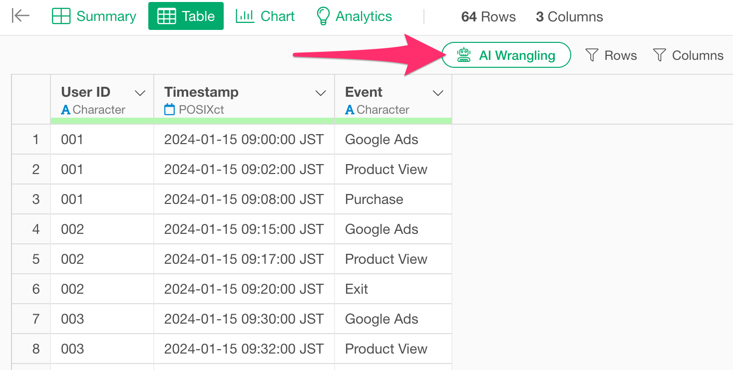 First, open the log data and click the “AI Prompt” button at the top of the screen.