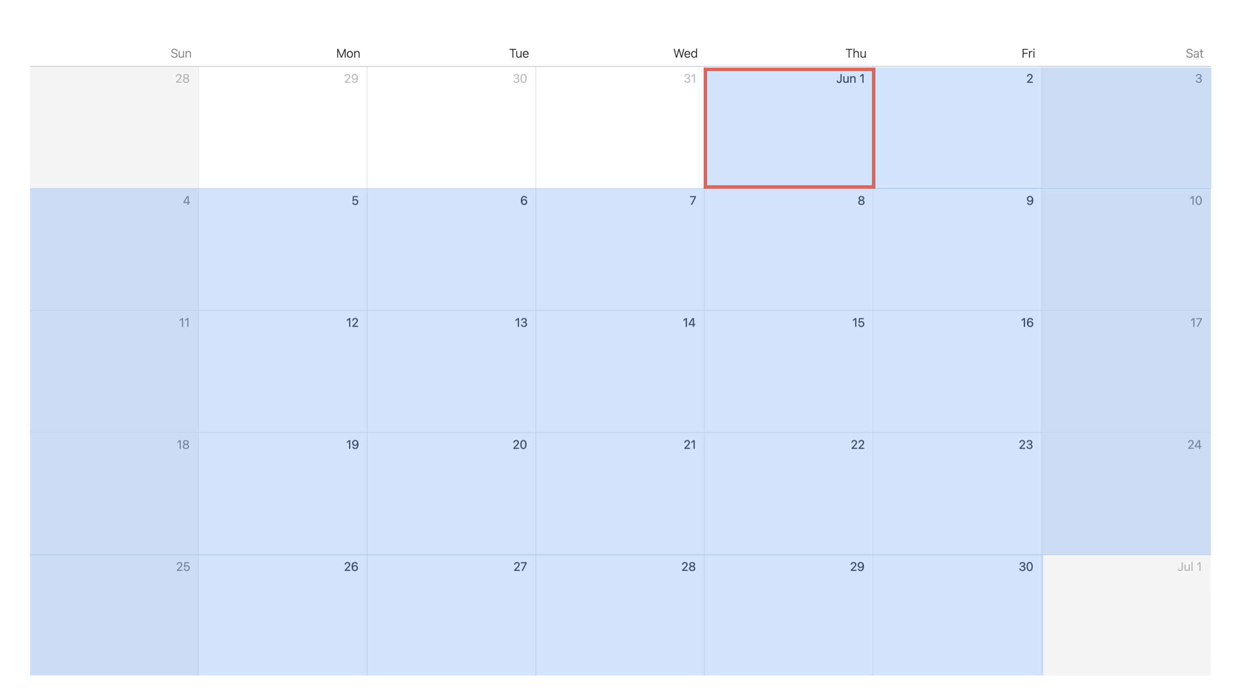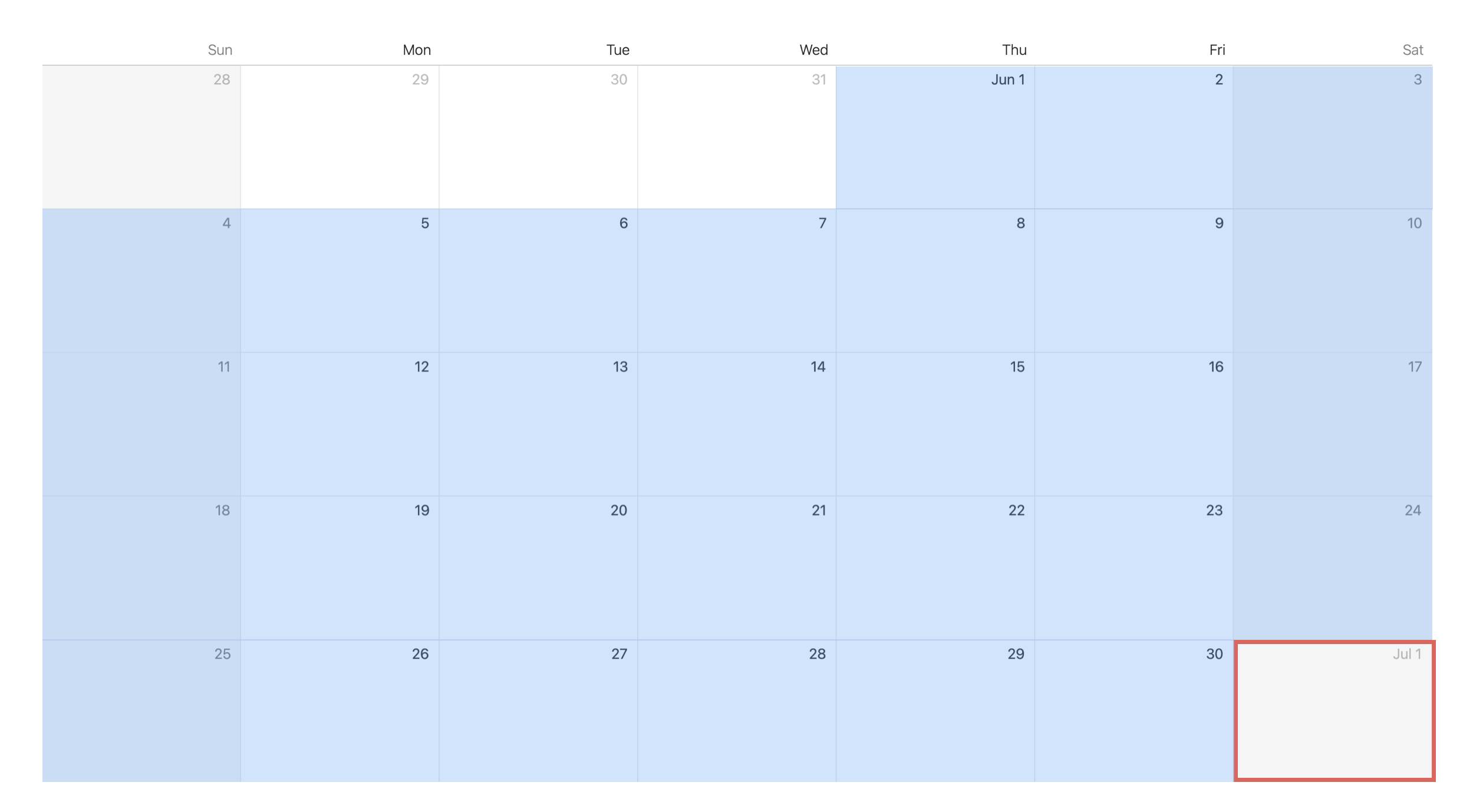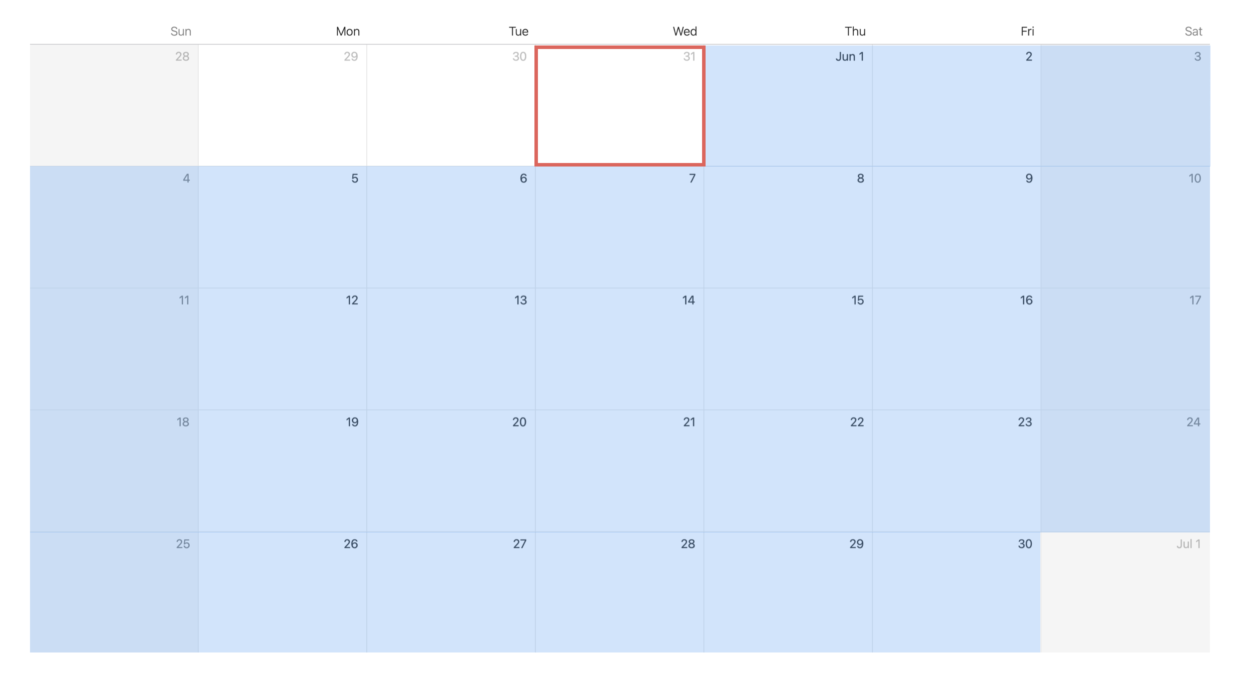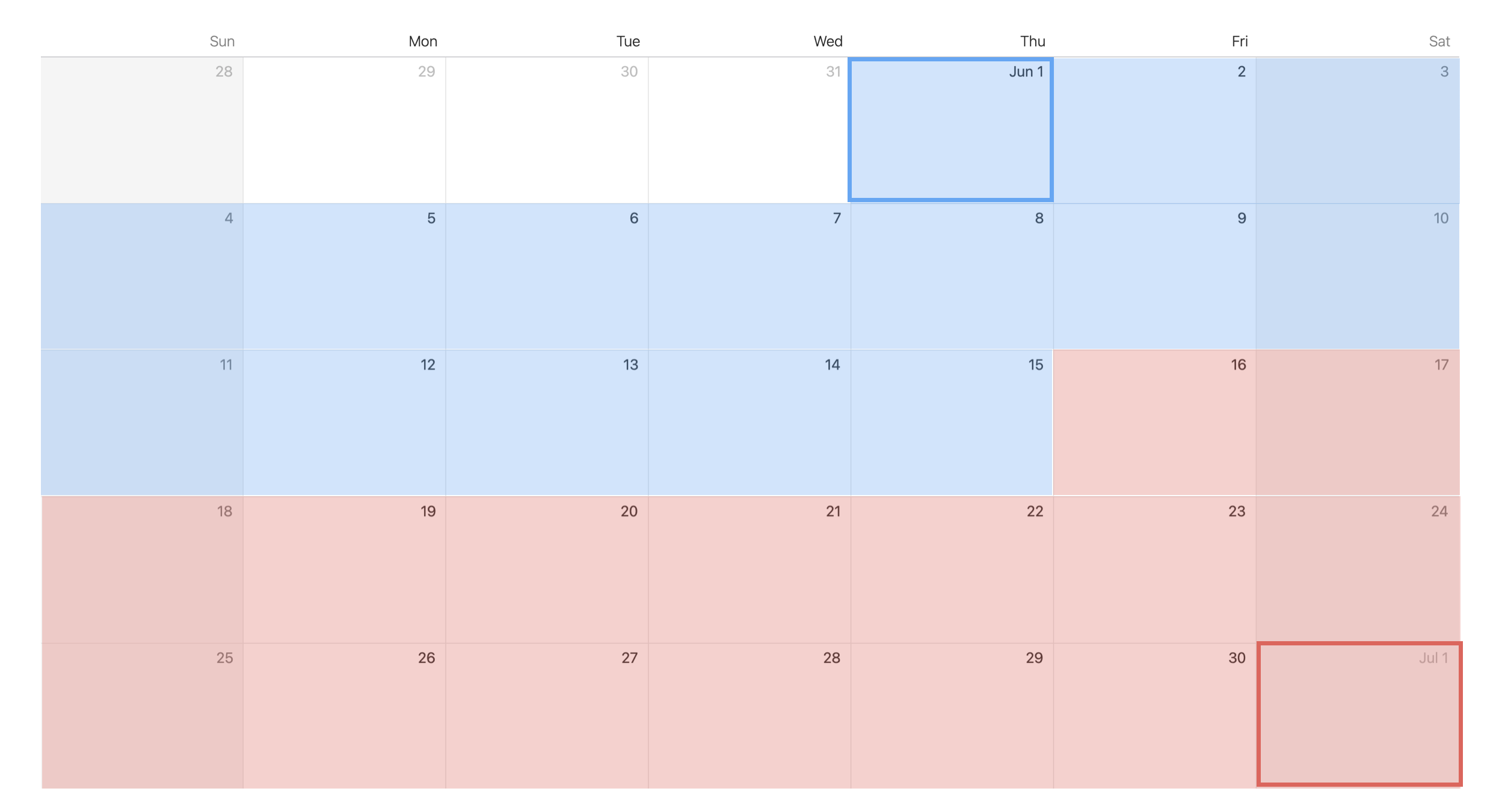 If the date of interest is in June, any day in June is rounded to May 31st, as shown below.