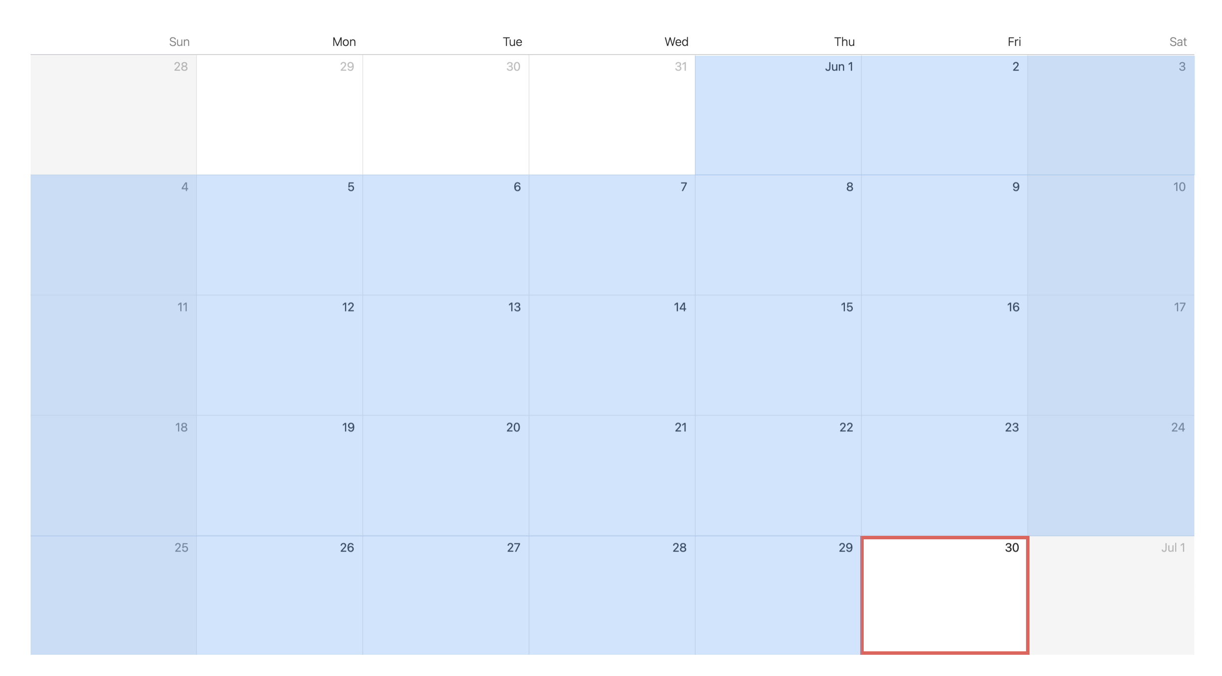 If the date of interest is in June, any day in June is rounded to June 30th, the last day of that month, as shown below.