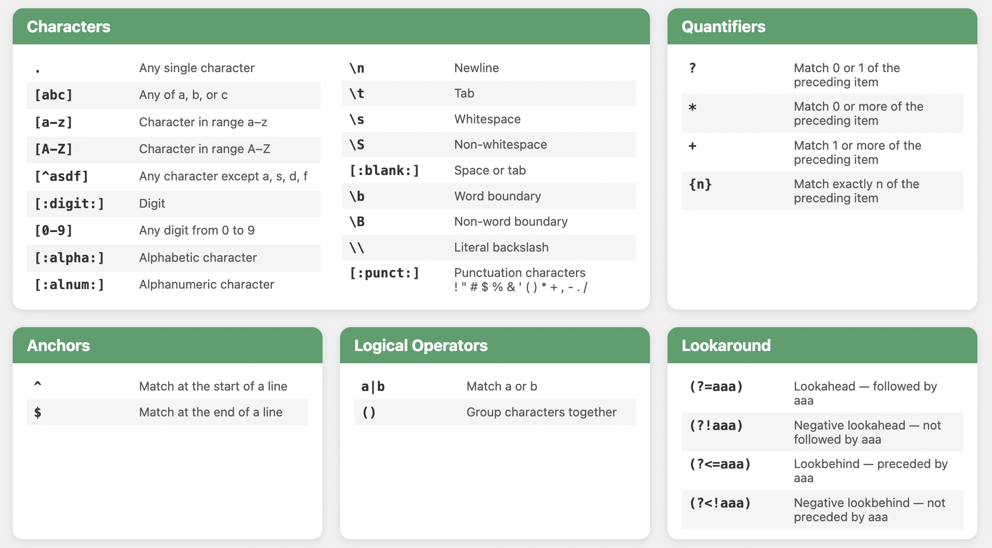 For those who want to learn about other regular expressions, please refer to this site.