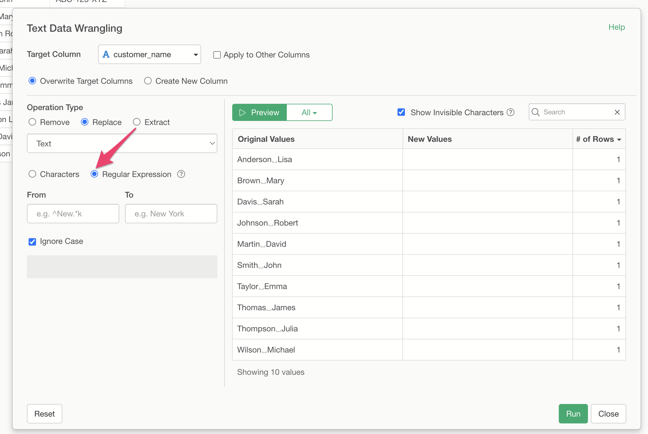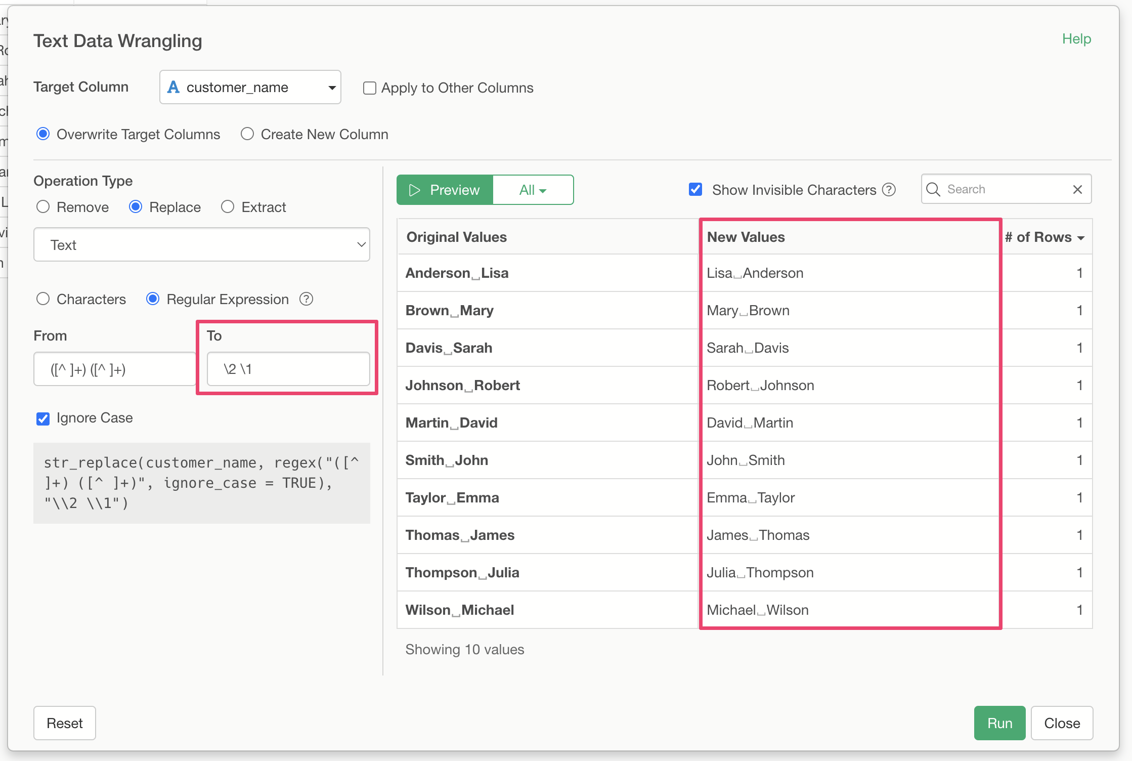 By clicking “Run,” you have successfully converted the data from the “Last Name, First Name” format to the “First Name, Last Name” format.
