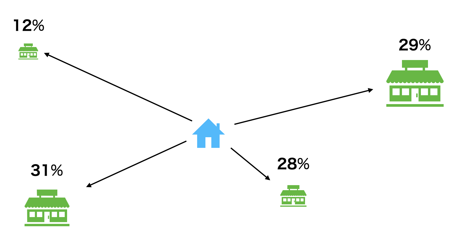 Probability of Visitation = Attractiveness / Sum of Attractiveness of All Stores