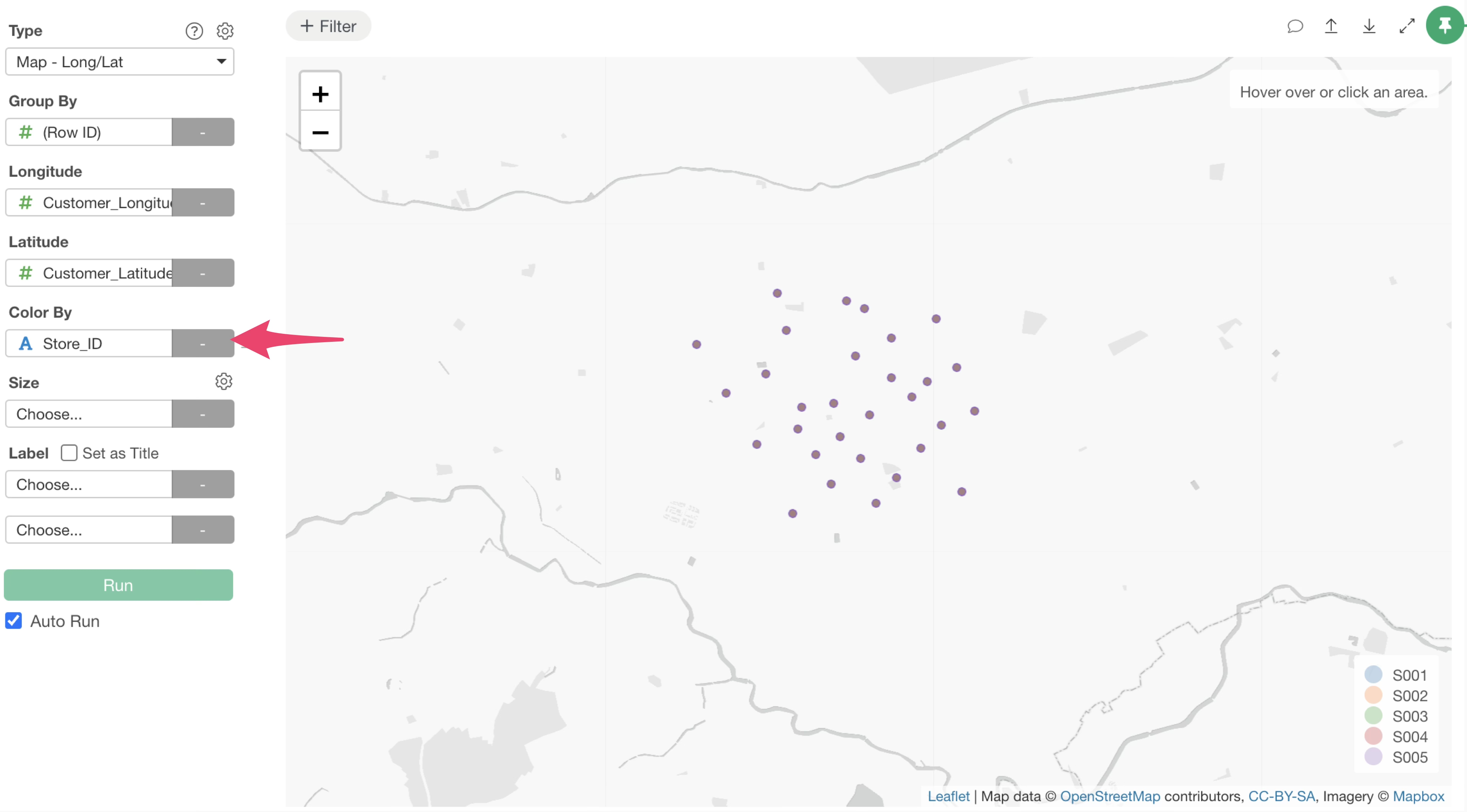 Next, for “Color By,” select the column that uniquely identifies the store.