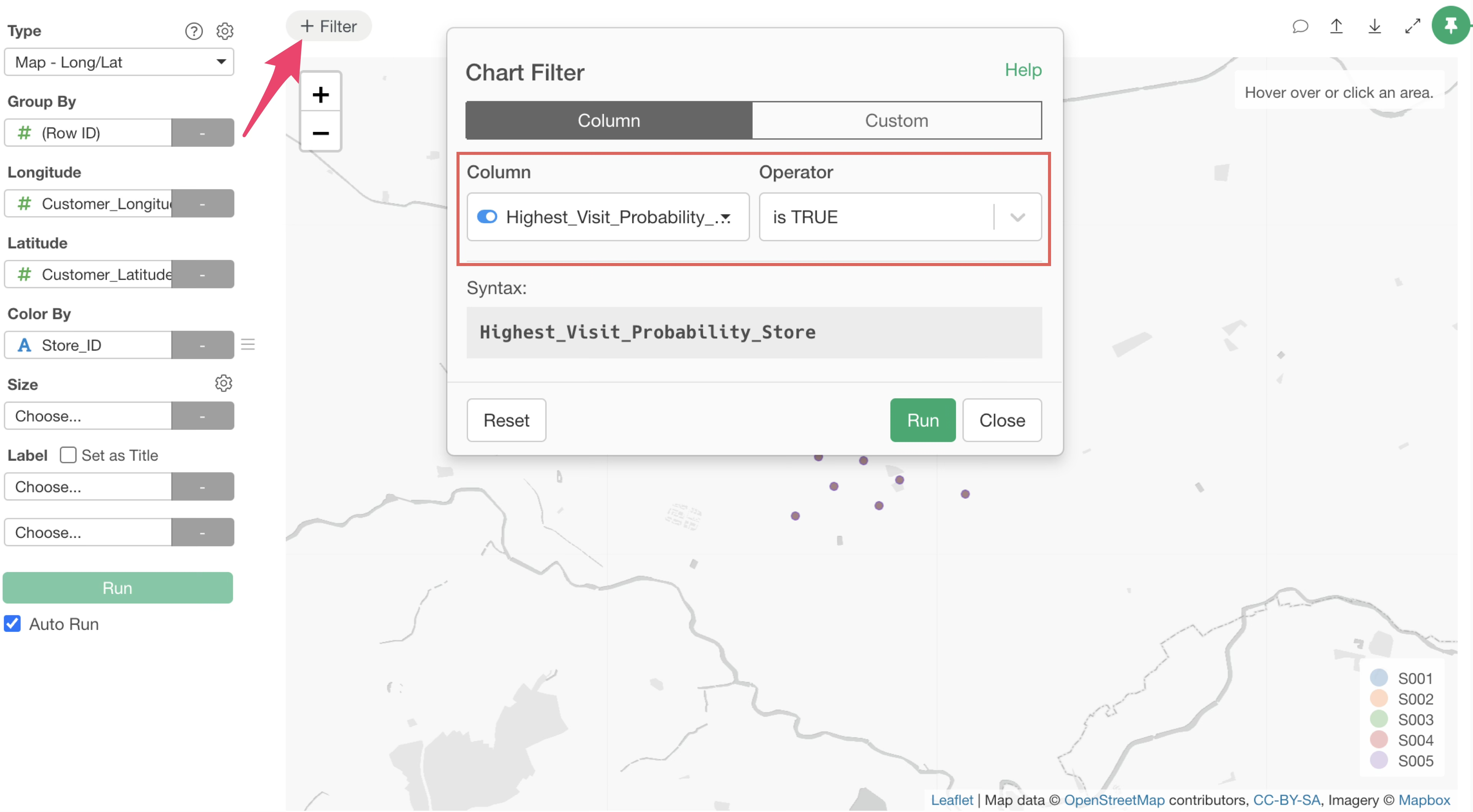 Therefore, click the “Add Filter” button at the top of the chart, select “Highest Visit Probability,” ensure the operator is TRUE, and execute.