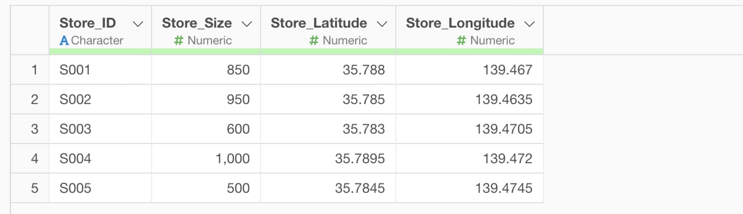 In Huff Model analysis, these two datasets are combined to create analysis data where each row represents a “pair of one customer and one store.”