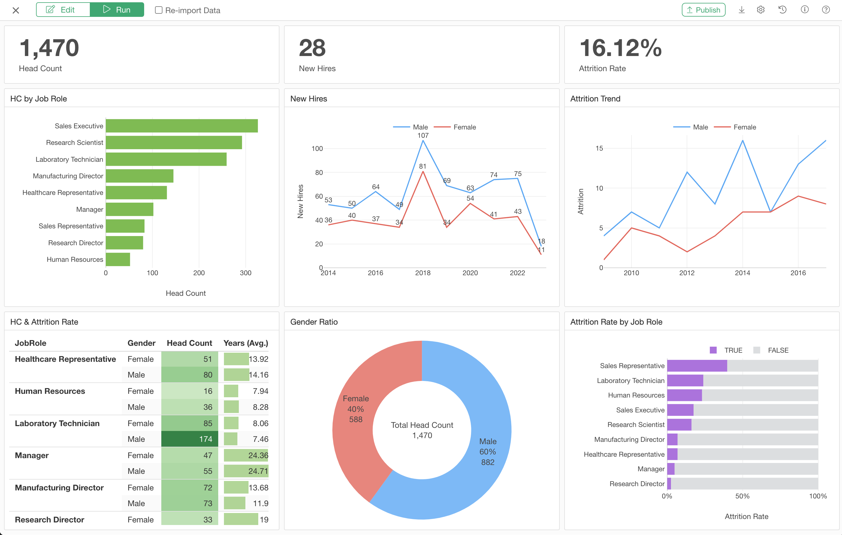 Using Exploratory, you can quickly and easily create dashboards by adding various types of content and flexibly designing layouts.
