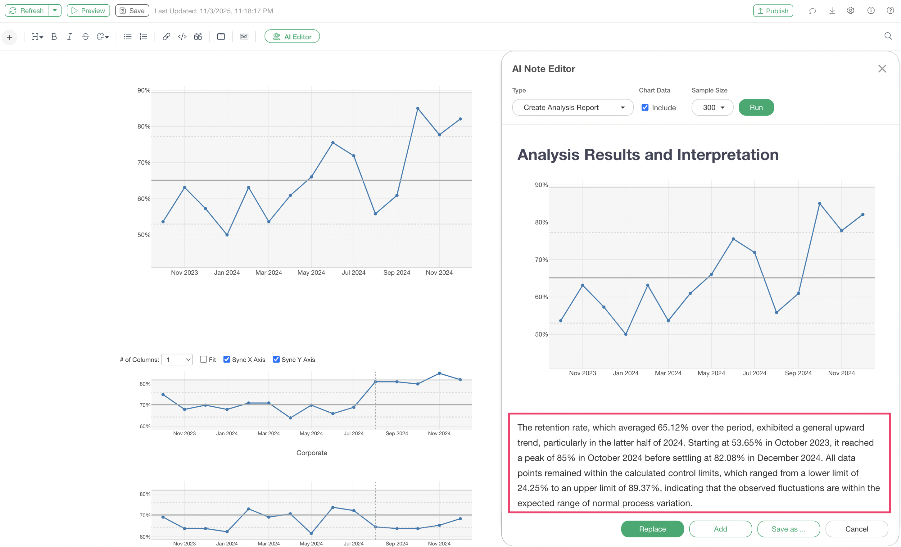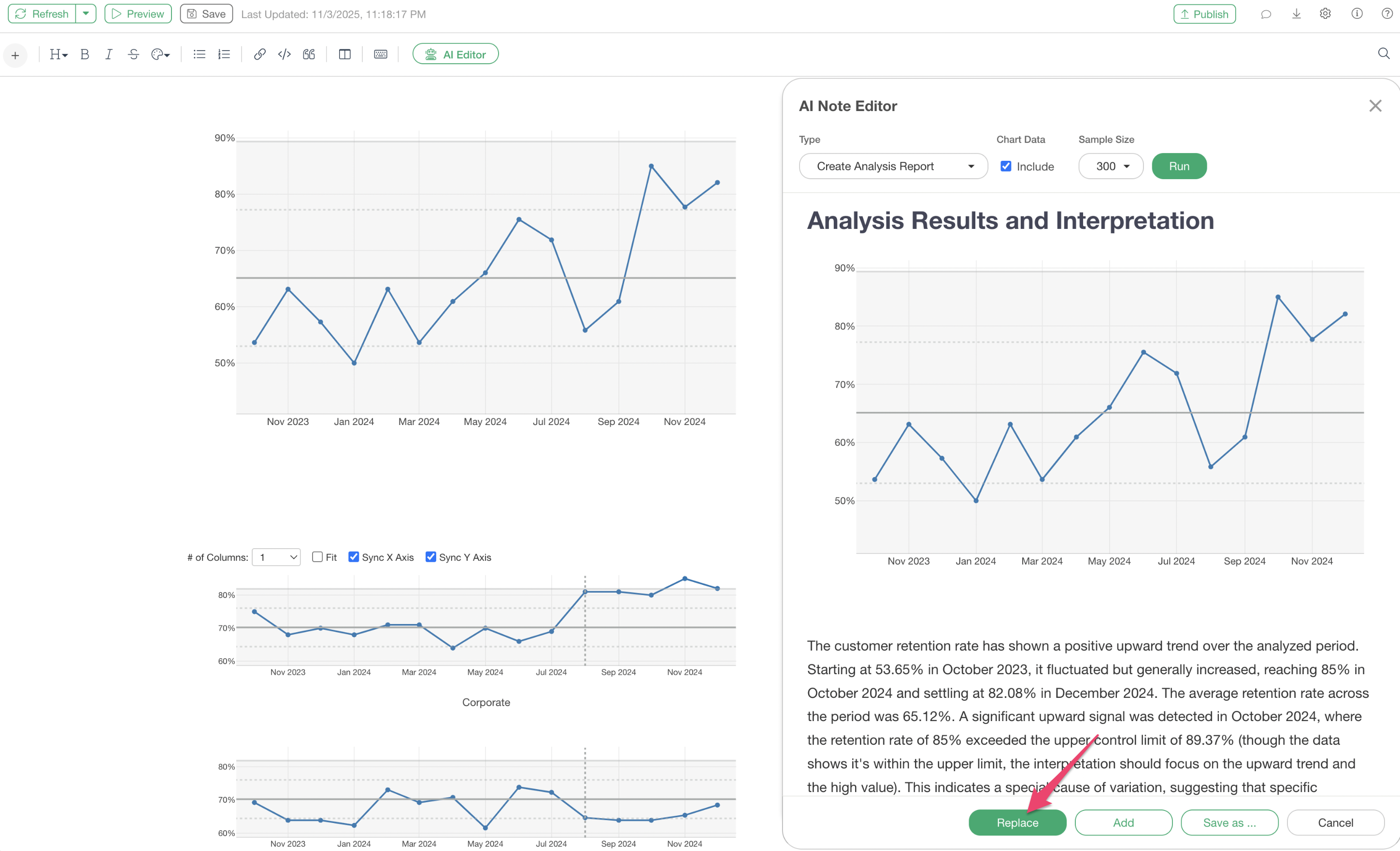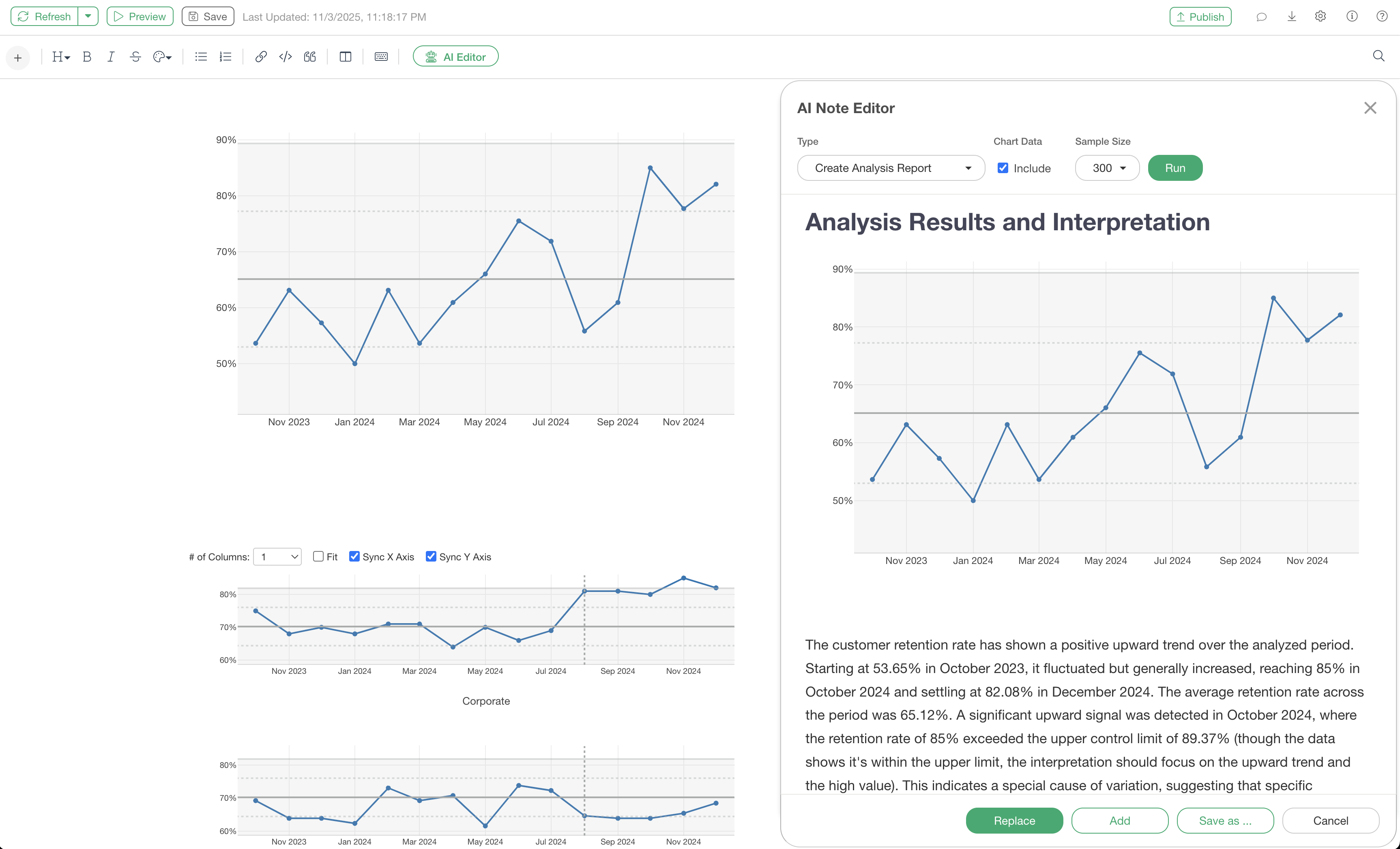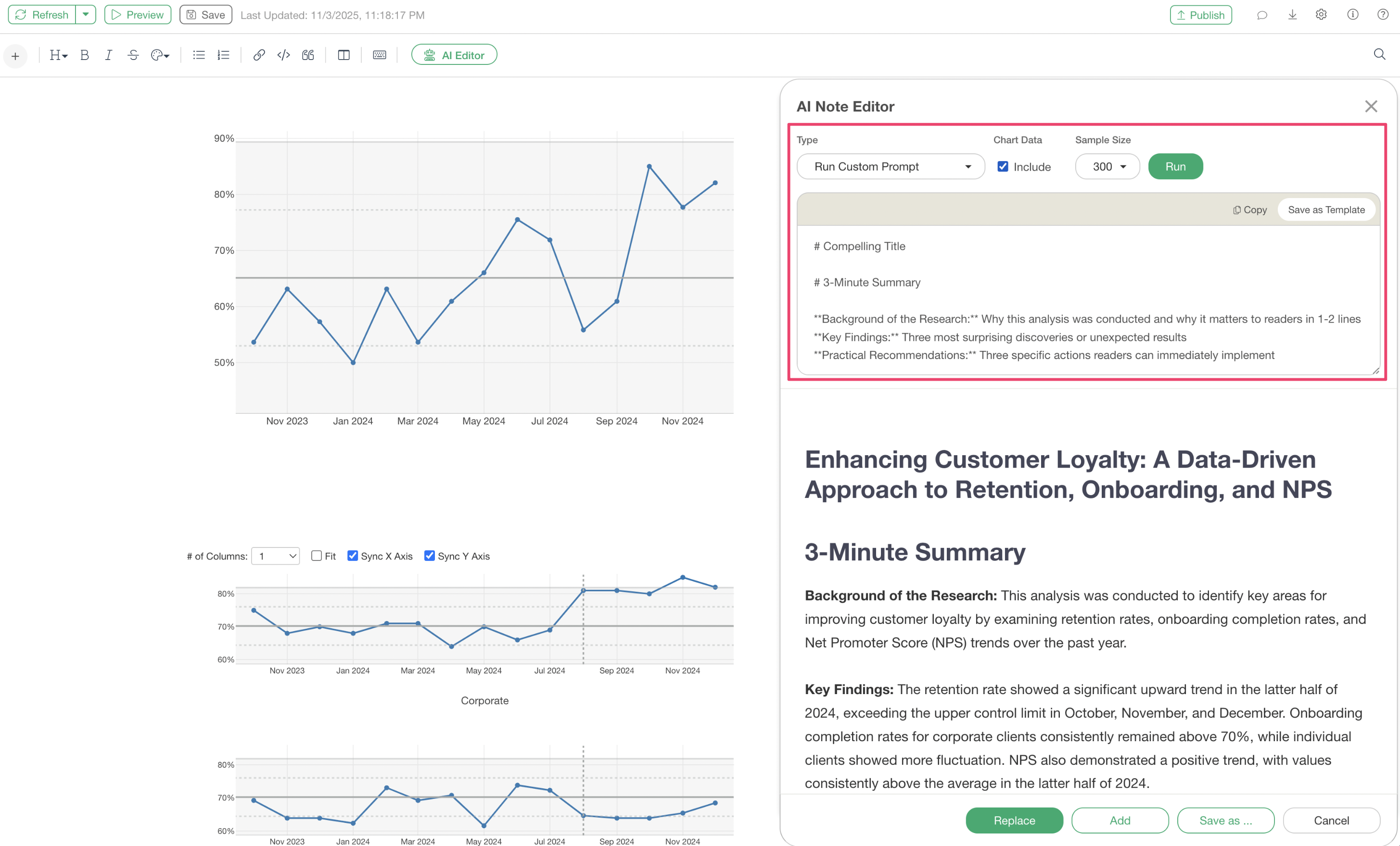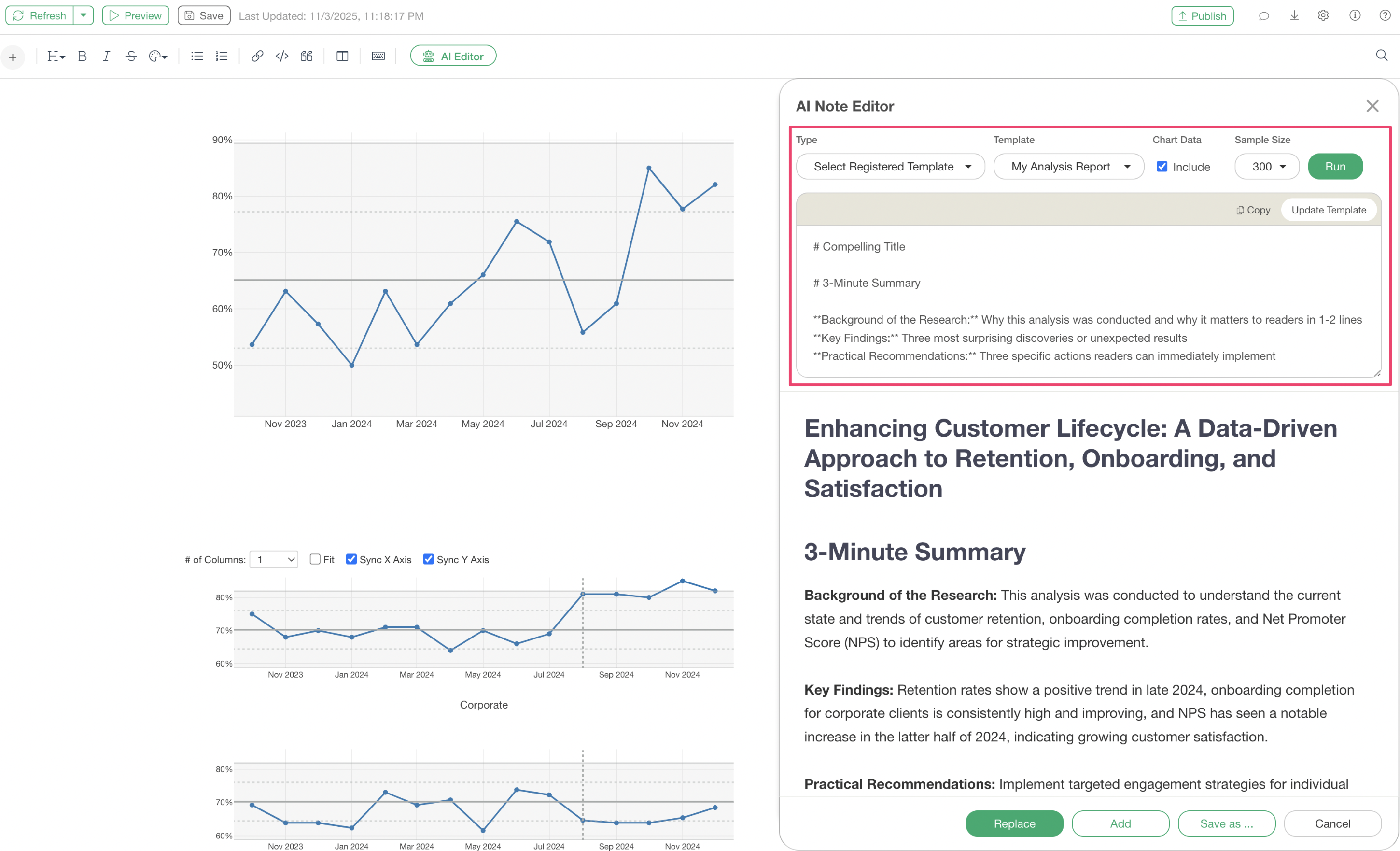Experience the efficiency of report creation in data analysis through new features like the AI Note Editor.