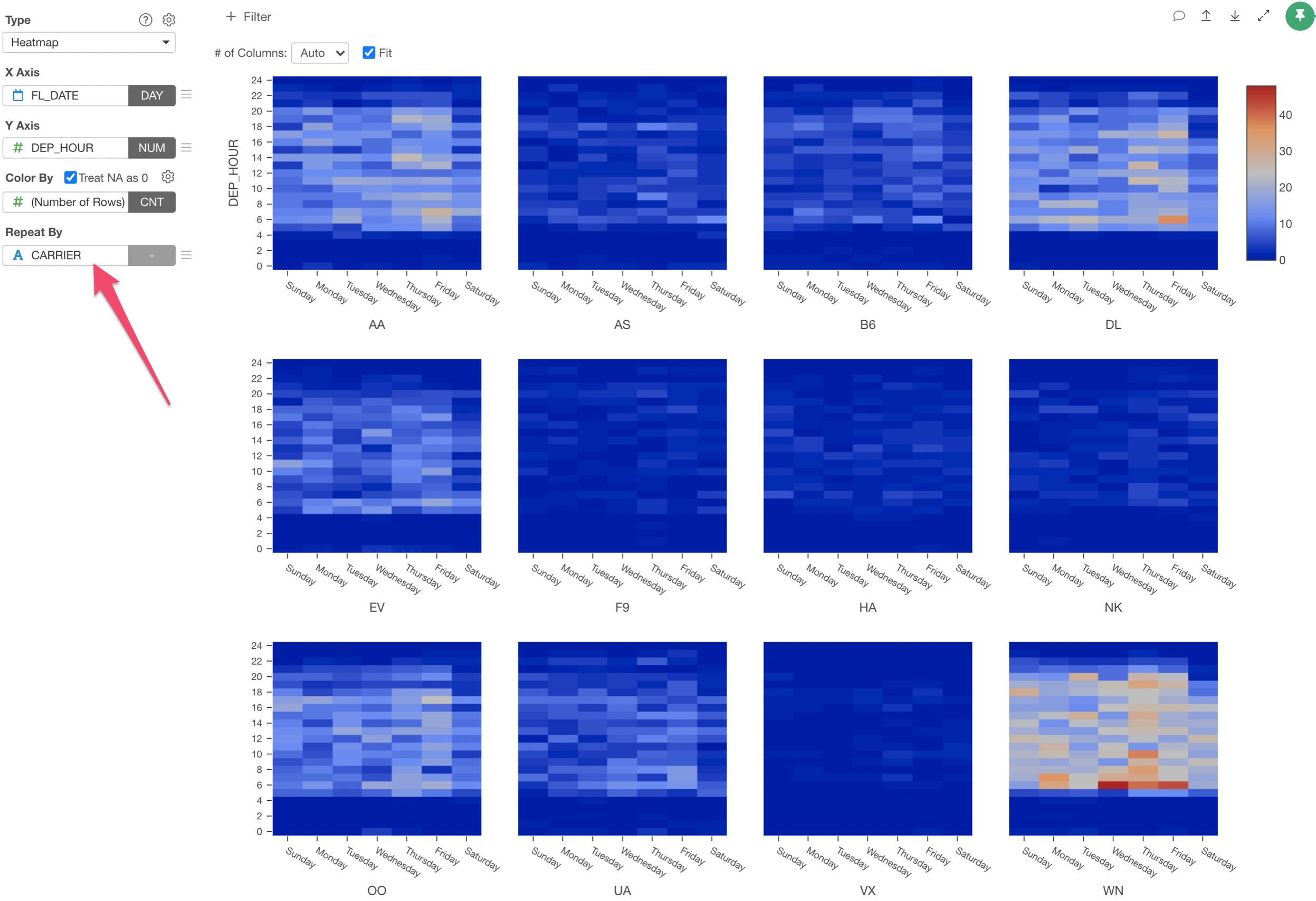 For example, you might want to assign the 'CARRIER' to the Repeat By so that you can have multiple heatmap charts each of which is generated for each carrier.