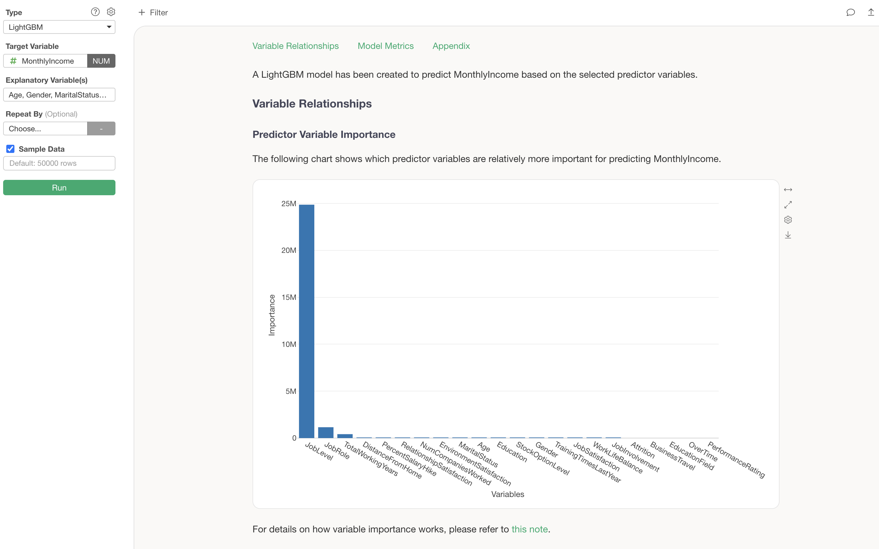 In this example, we will build a LightGBM model to predict employee “MonthlyIncome”.