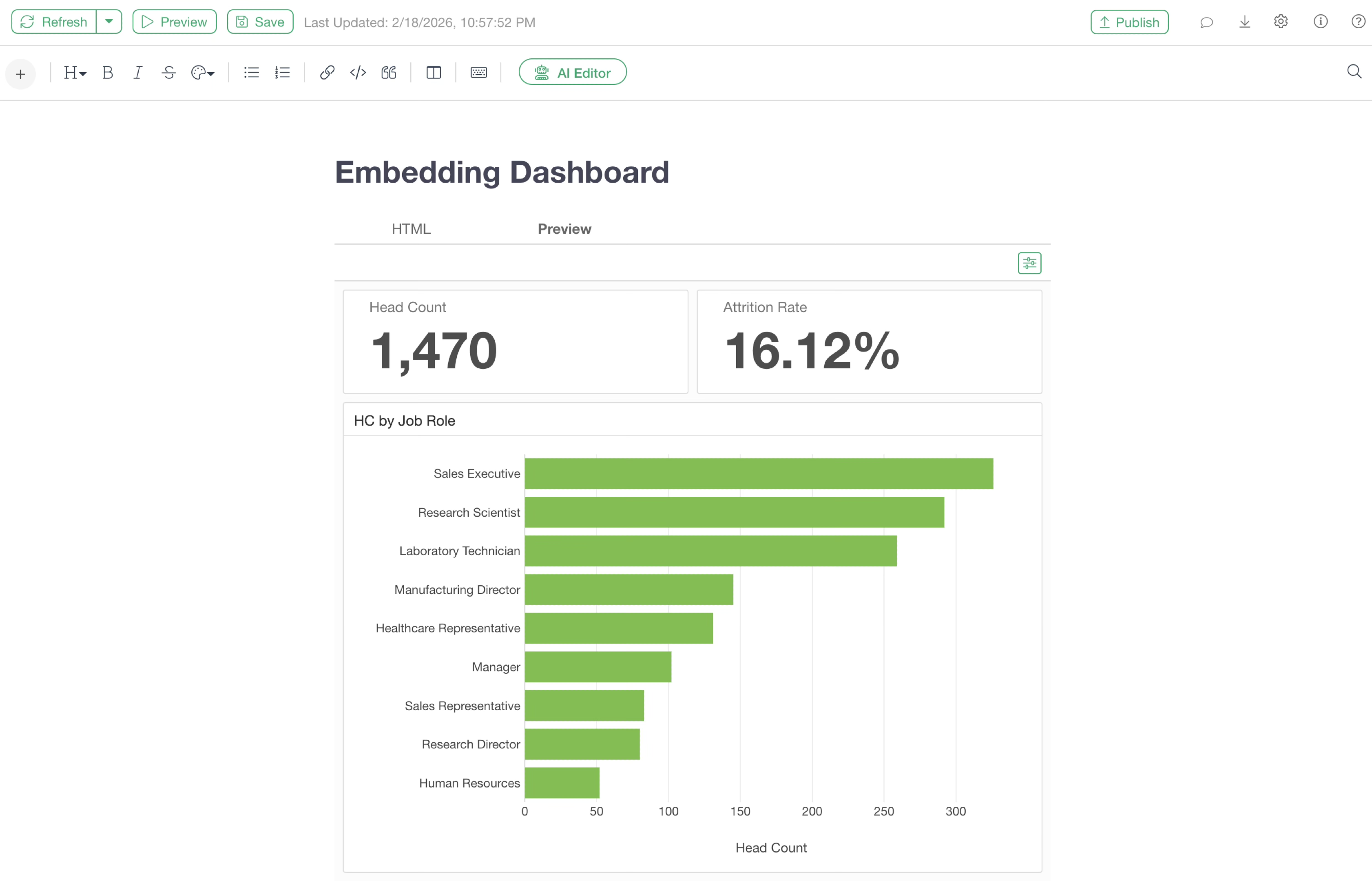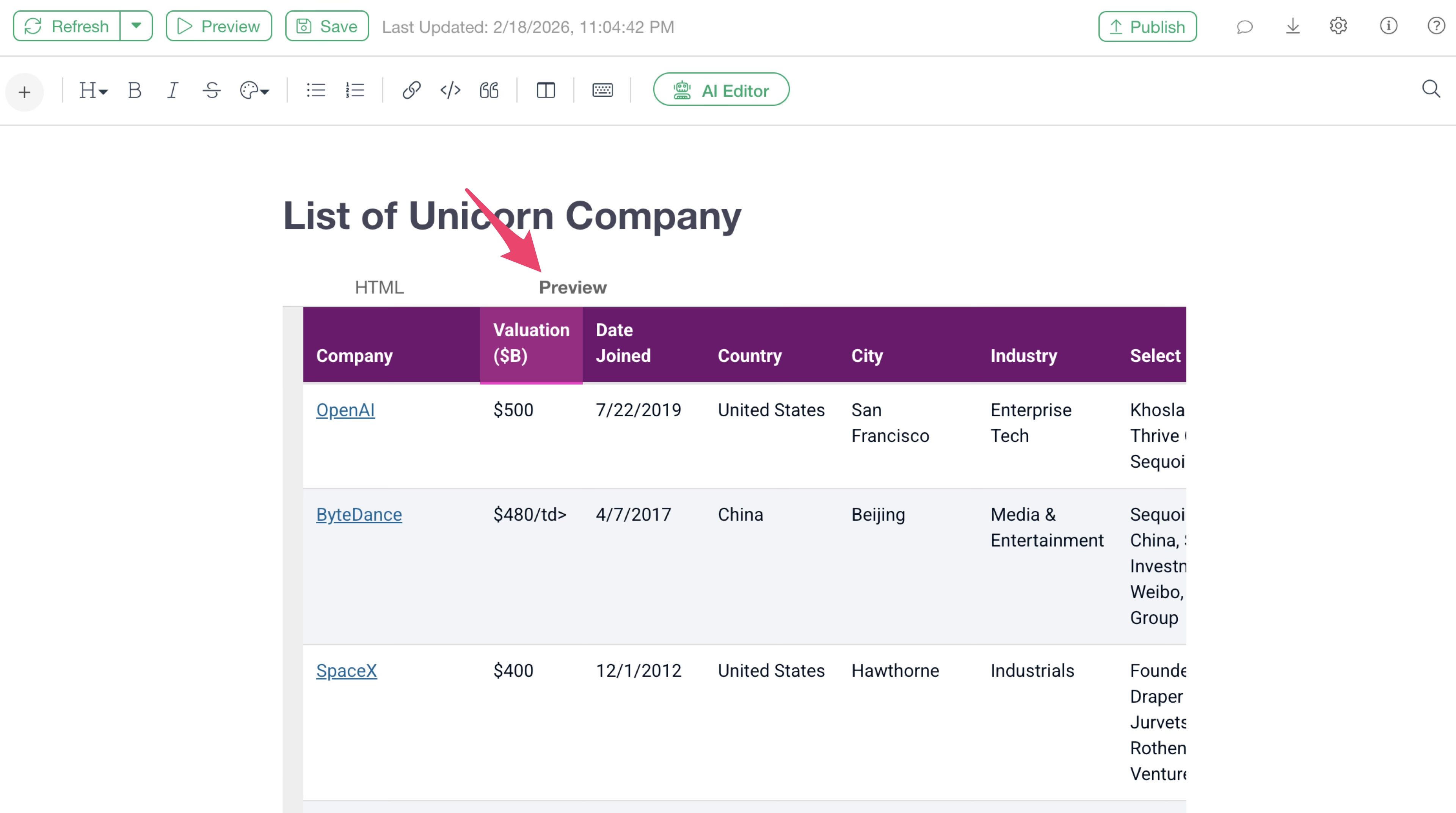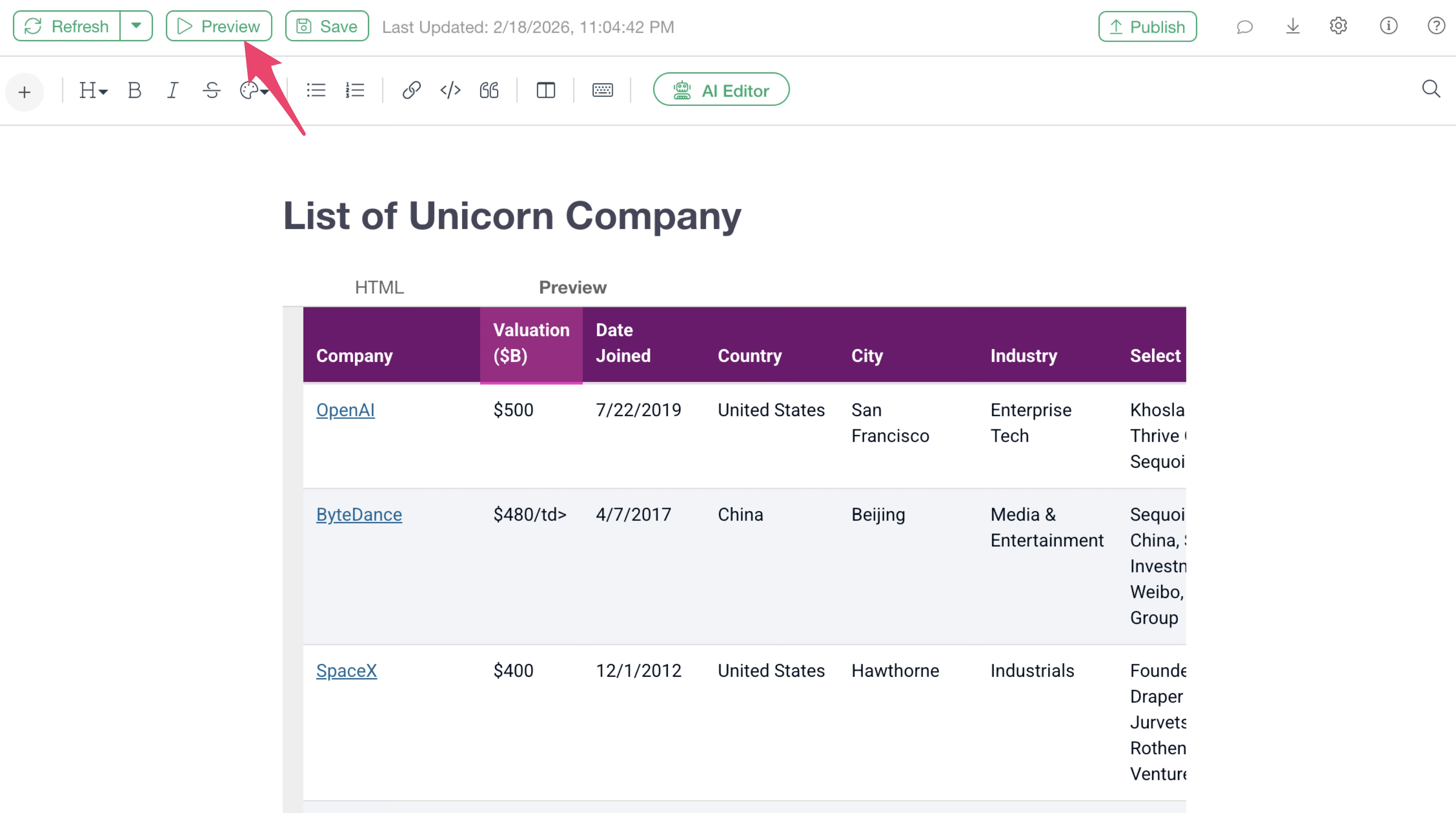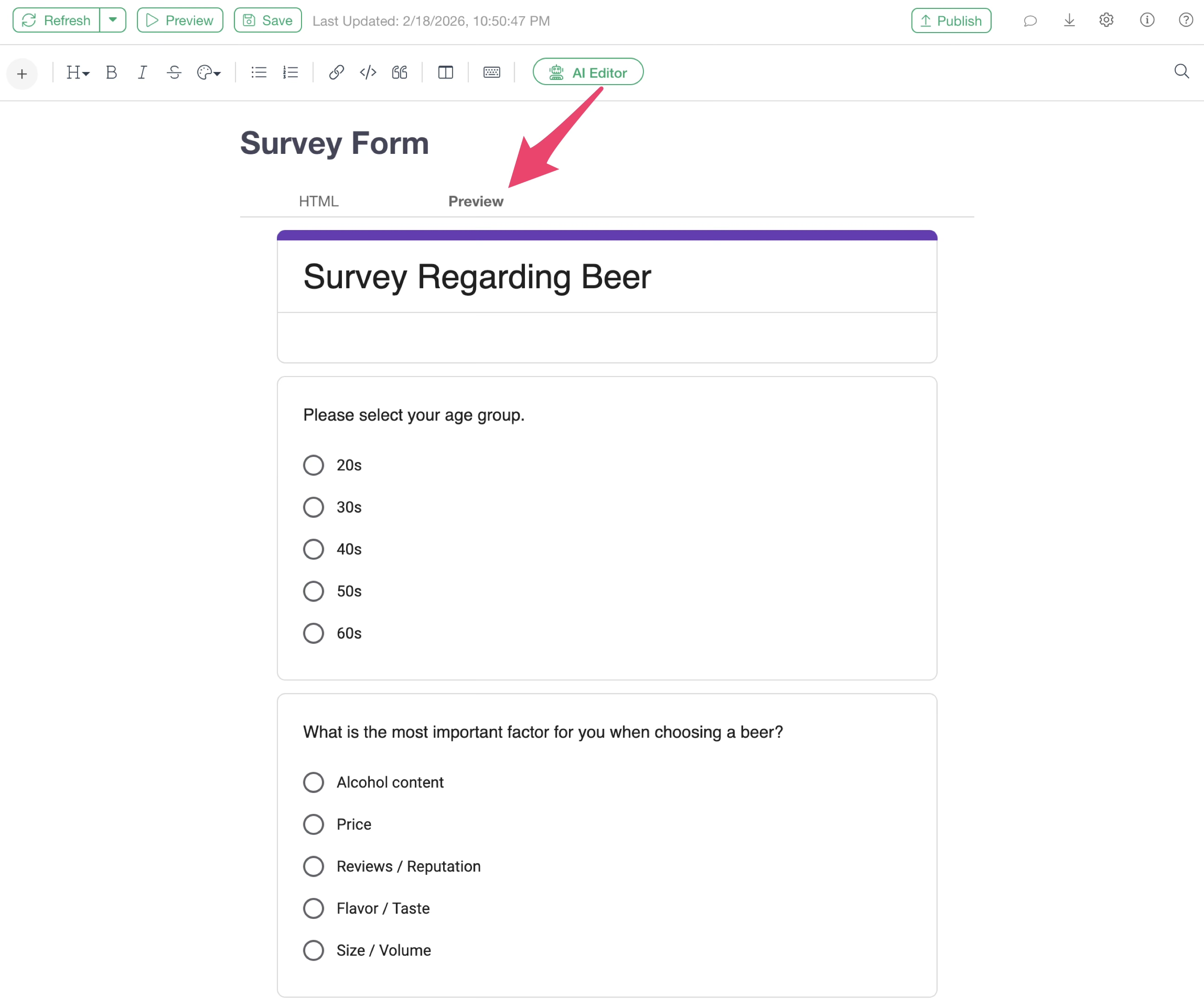 Once you have finished writing the HTML, you can click the “Preview” tab to check the execution result.