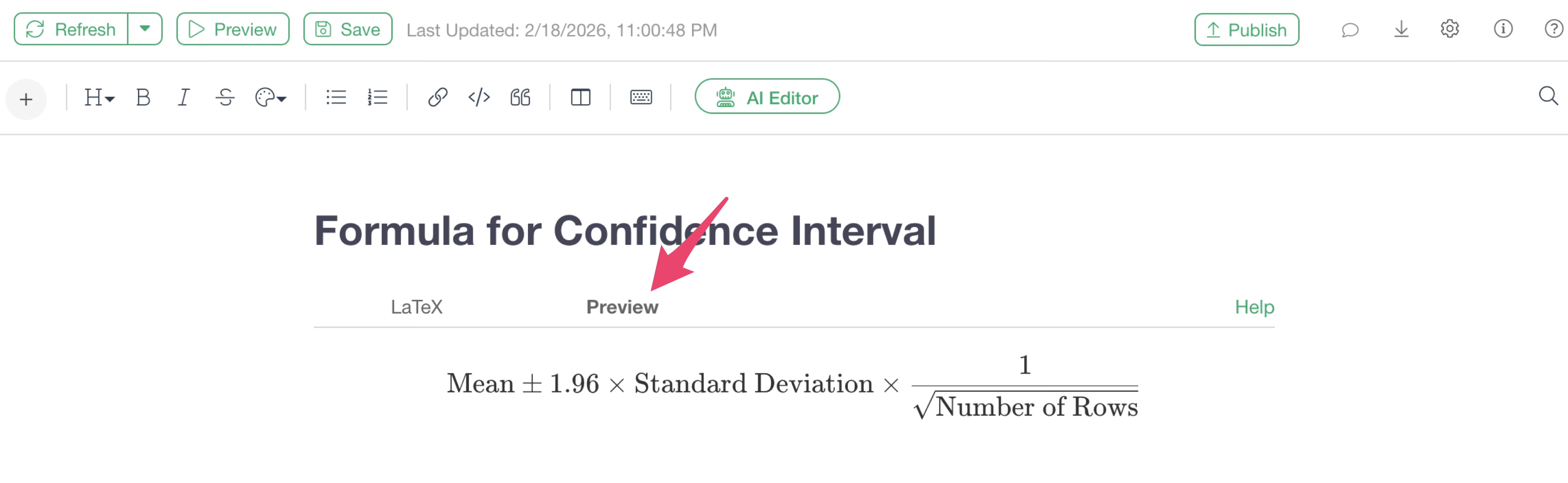 Once you have finished writing the equation, you can click the “Preview” tab to check the content of the formula.