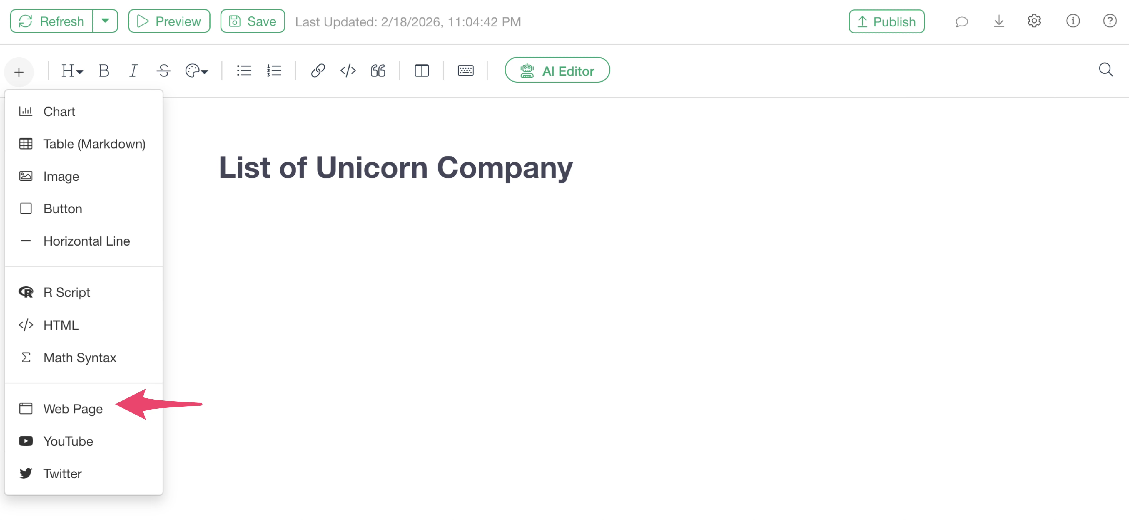 If you want to embed a specific “Web Page” into a Note, select “Web Page.”