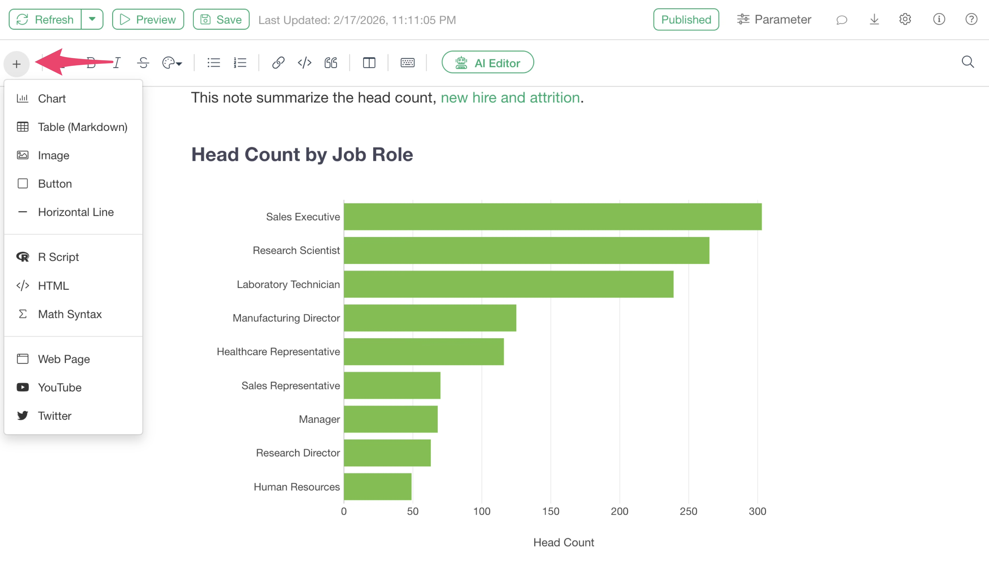 Using this mechanism, you can also embed Exploratory dashboards into a Note.