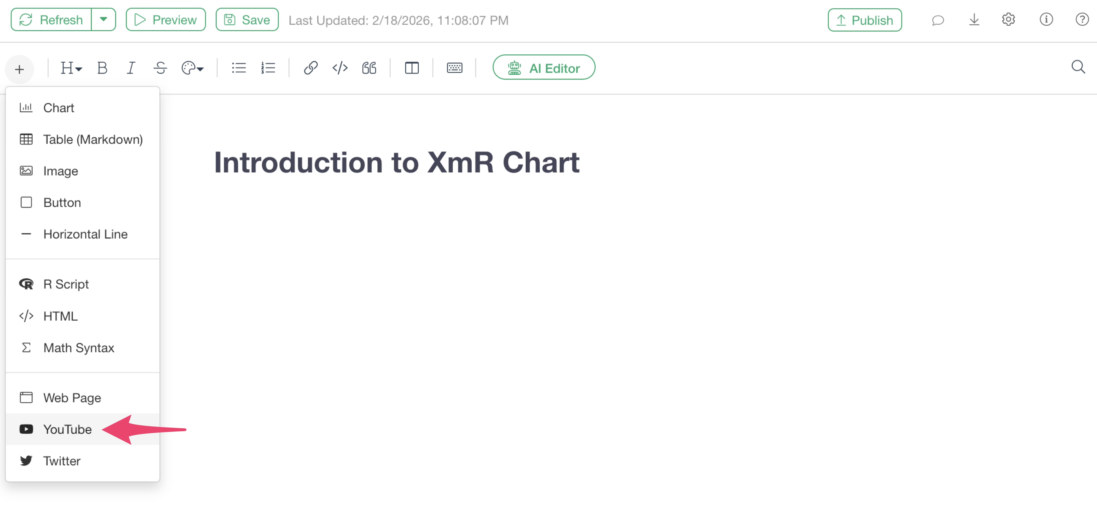 To embed a “YouTube” video into a Note, select “YouTube.”
