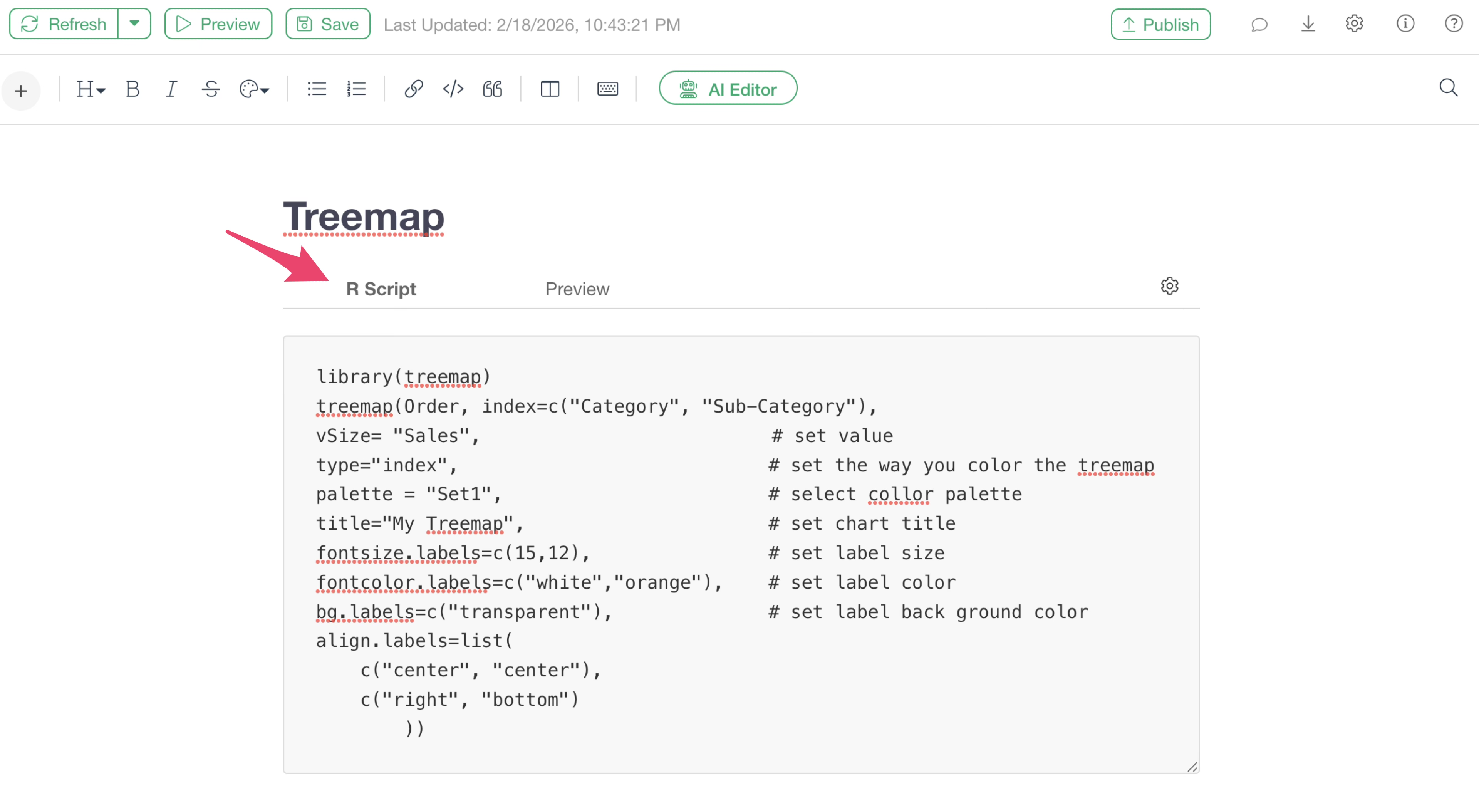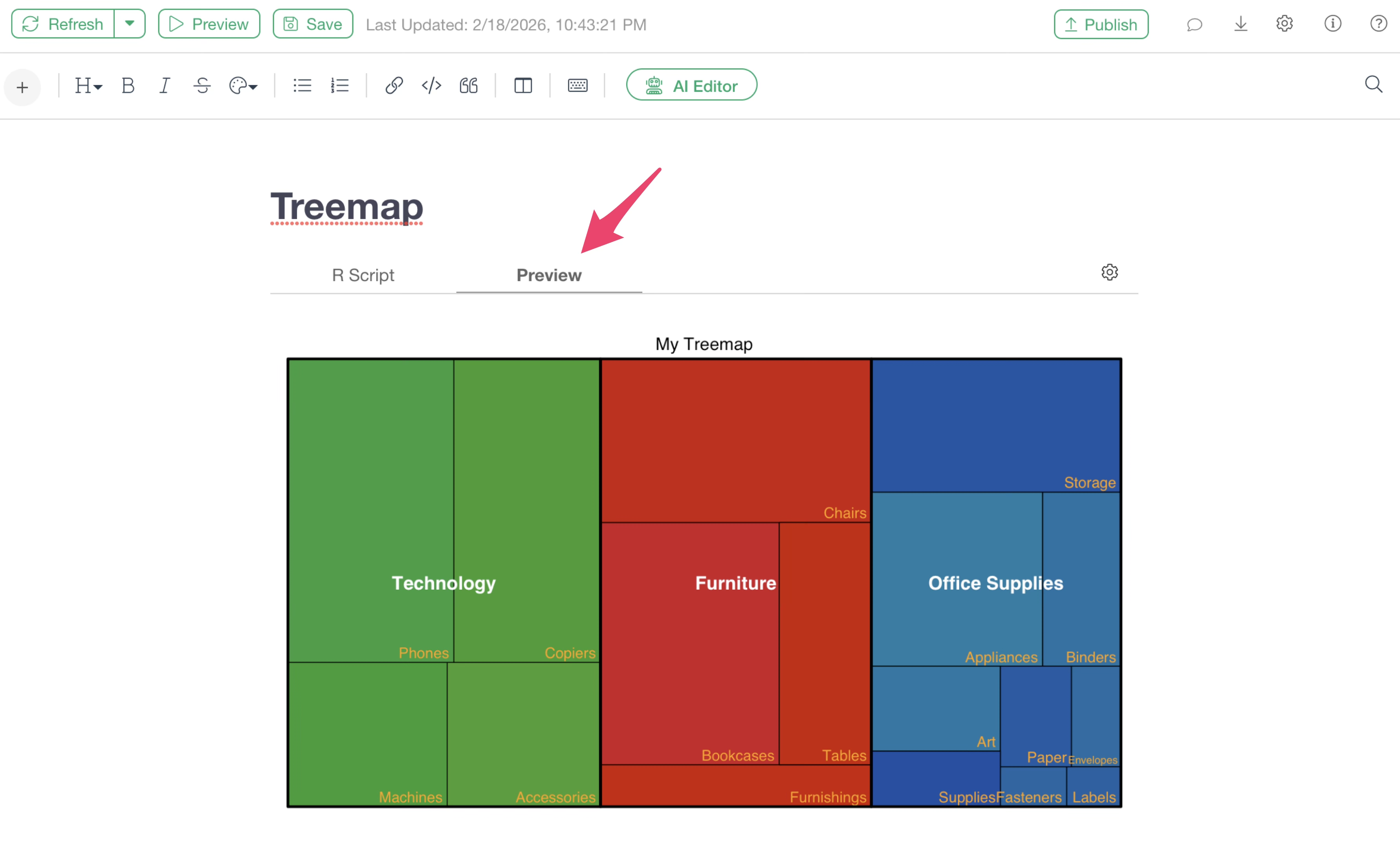 Once you have finished writing the R code, you can click the “Preview” tab to check the execution results of the R code.