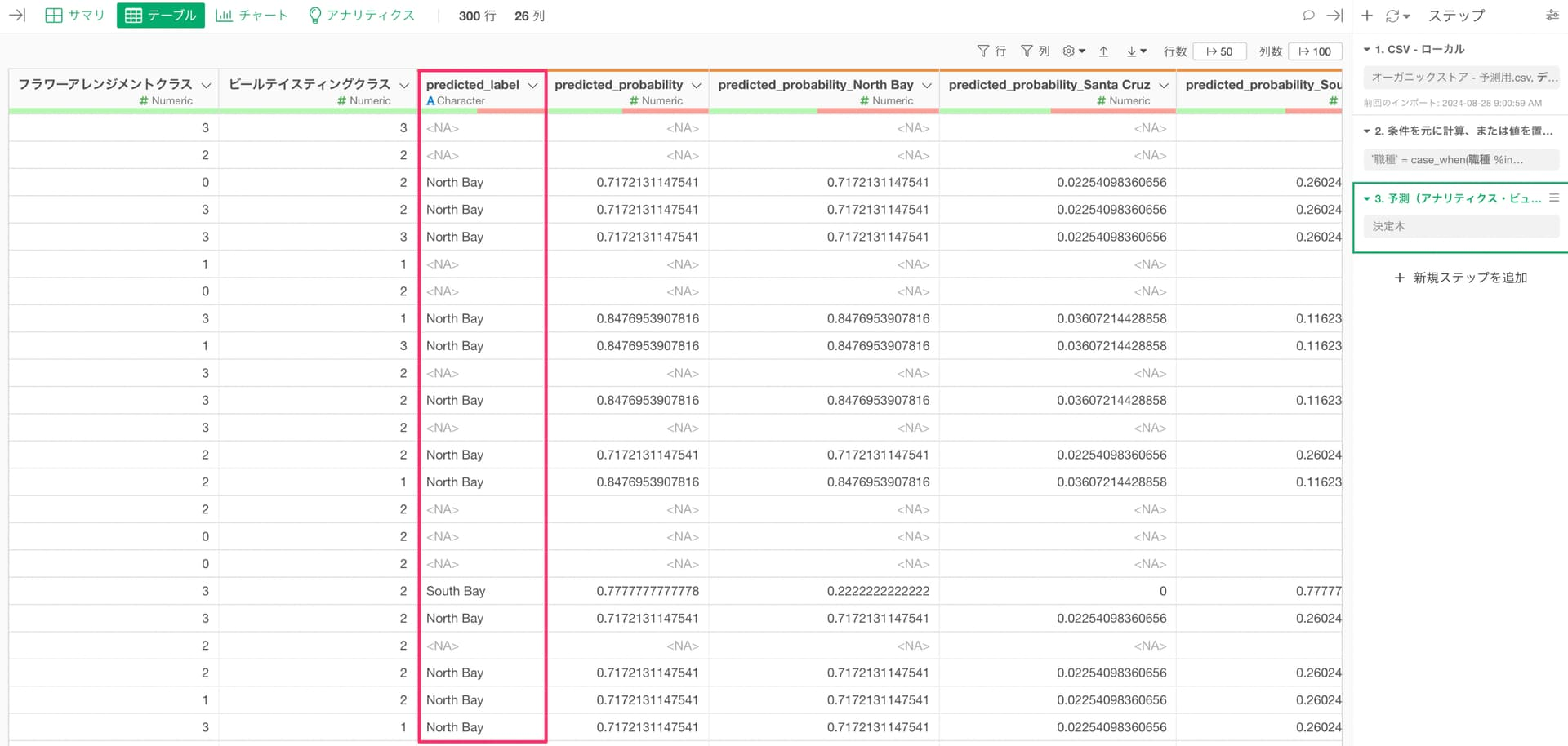 予測タブの実測値はそれぞれの予測変数のデータタイプによって表示が異なります。 詳しくはこちらのノートをご覧ください。