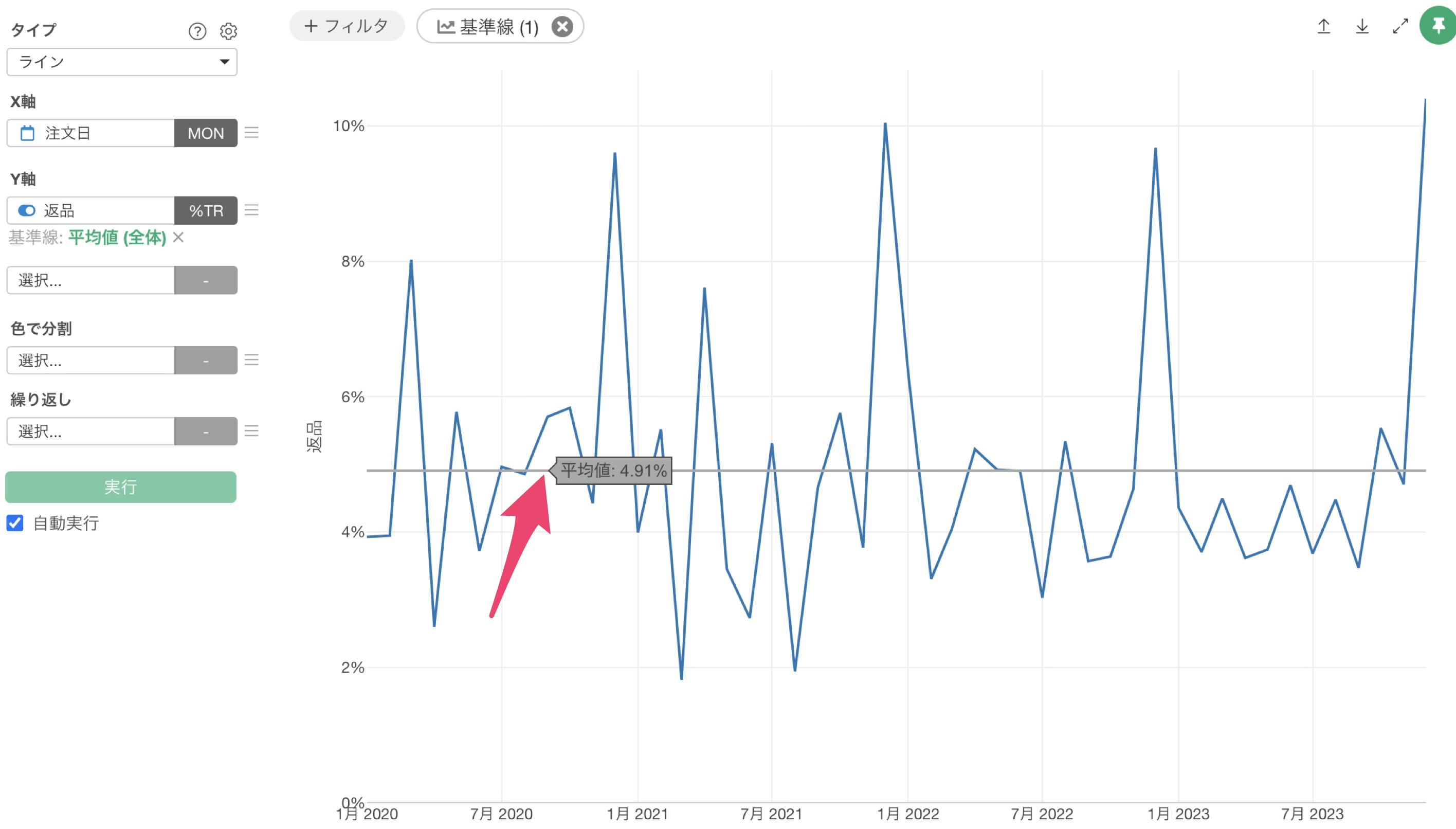 このノートでは、Exploratoryで基準線(リファレンスライン)の使い方を設定する方法を紹介します。