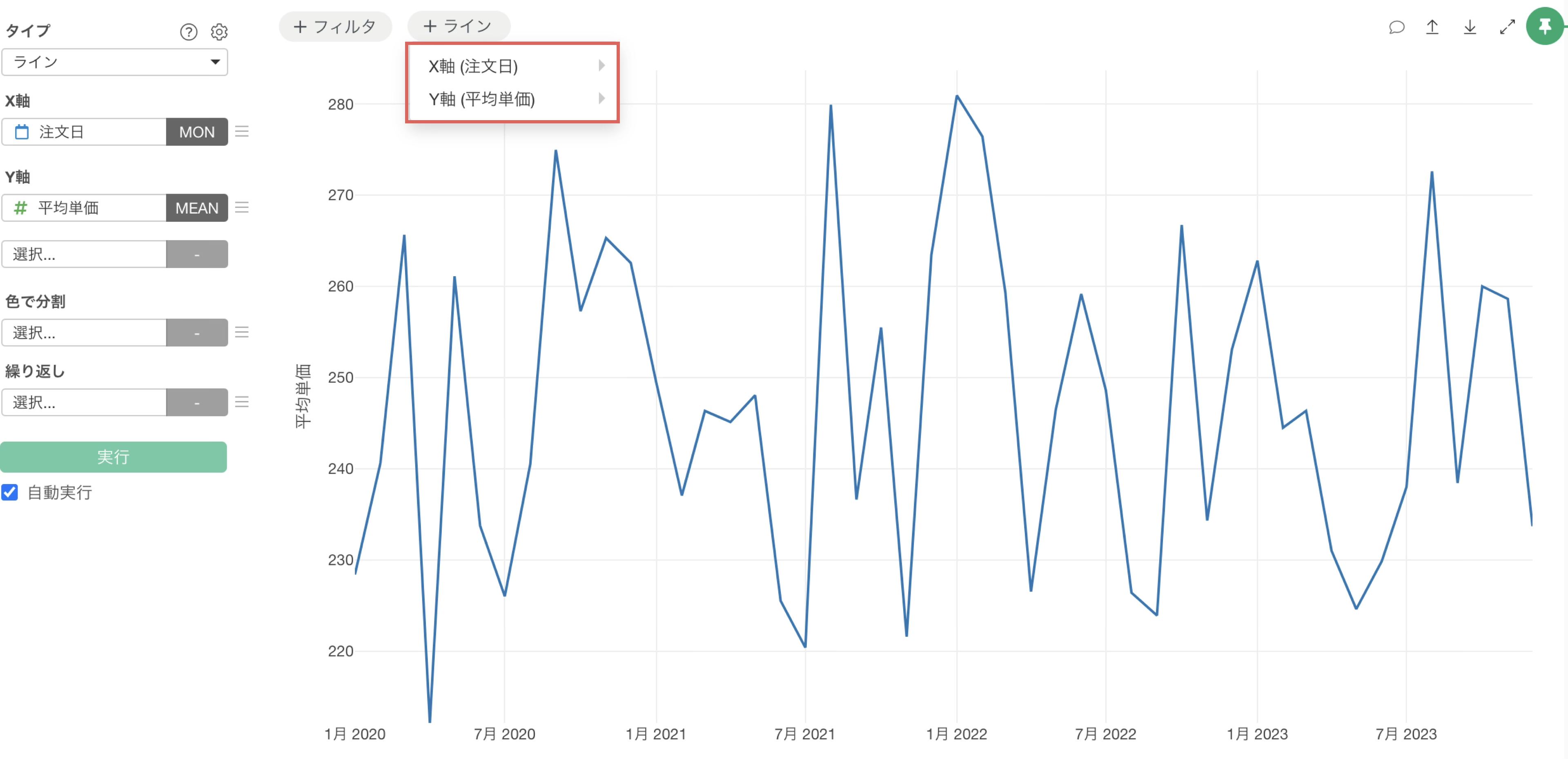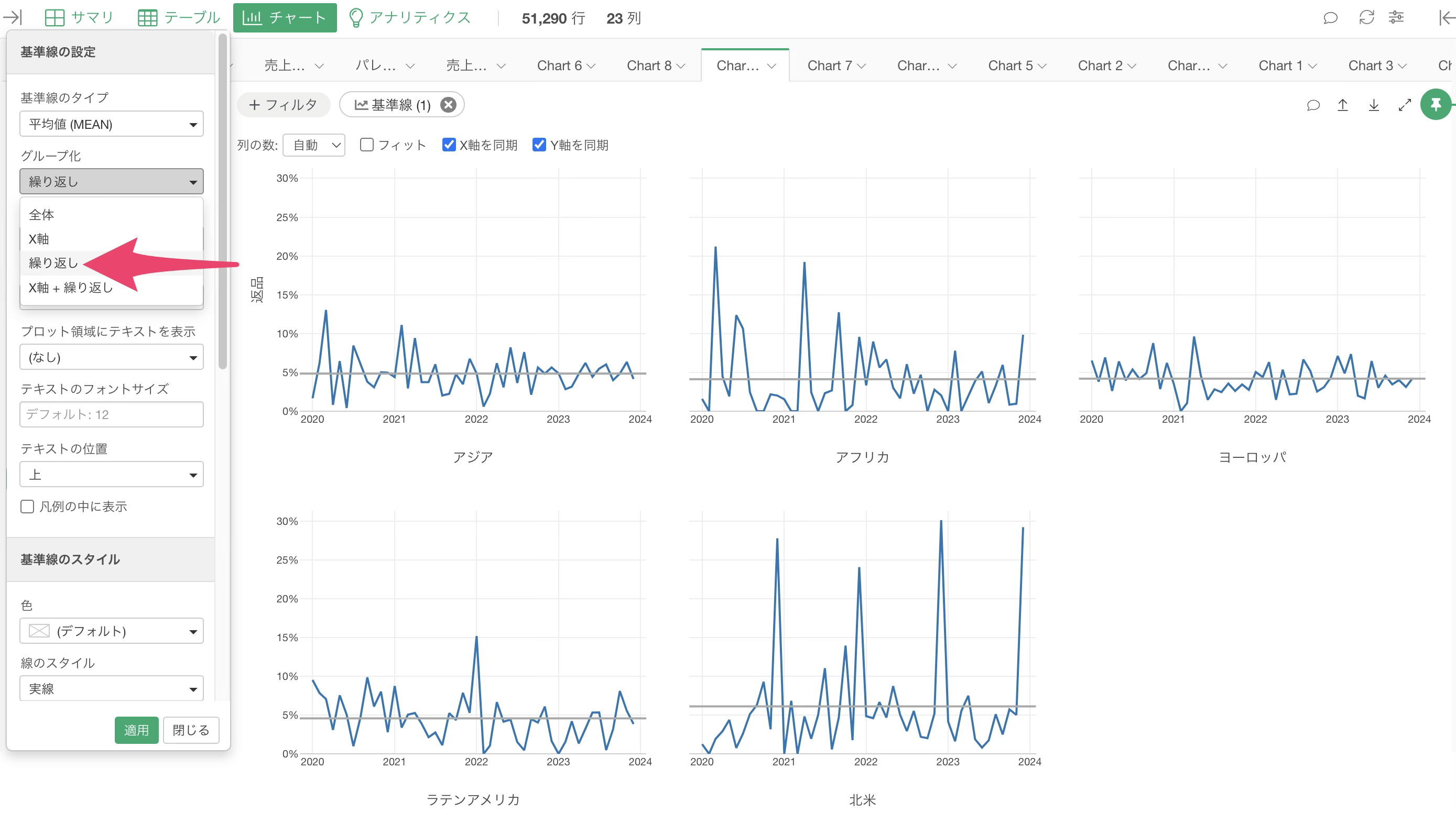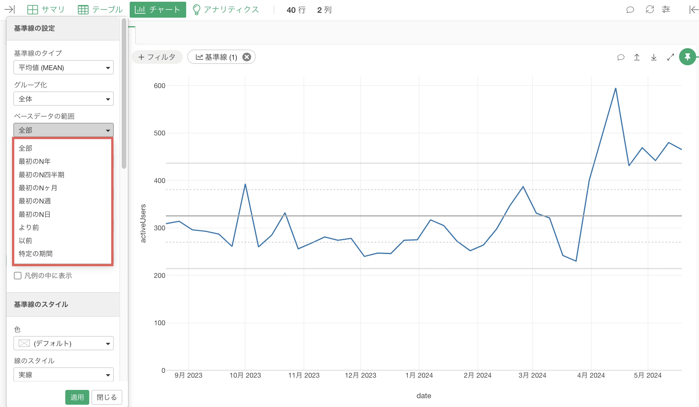 なお、基準線は、これまでと同じように、Y軸の値のメニューからアクセスすることも可能です。