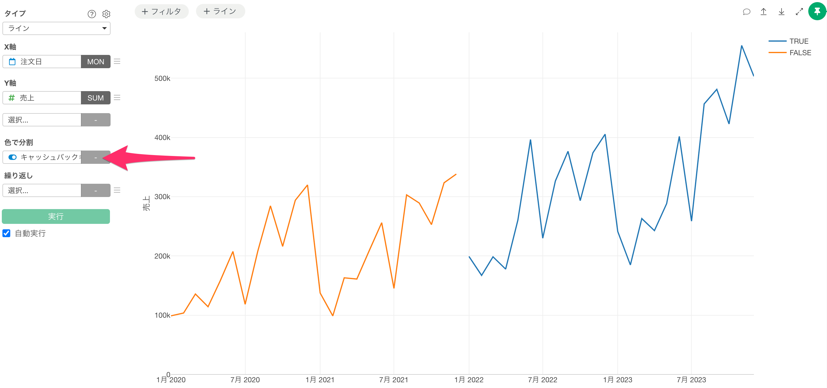 繰り返しを選択することで 繰り返されるカテゴリーごとに 基準線が設定されます。