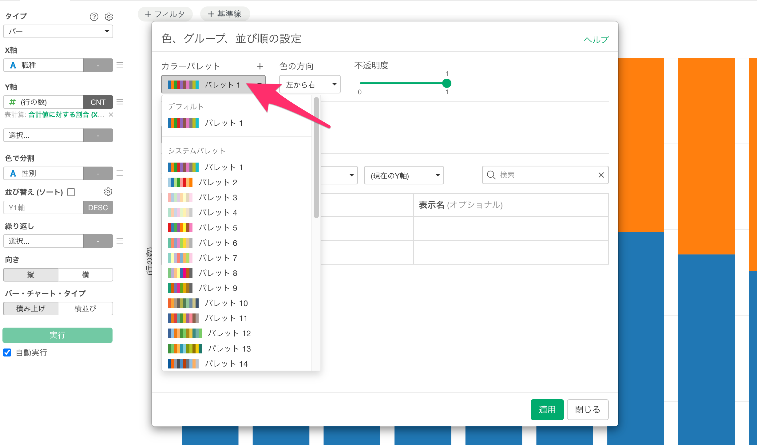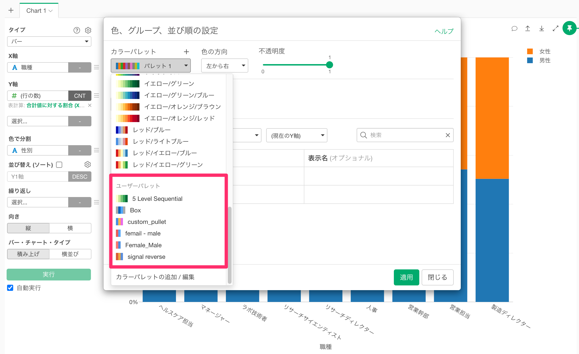 Exploratoryを再起動すると、追加したカラーパレットがカラーパレットの選択画面に反映されます。